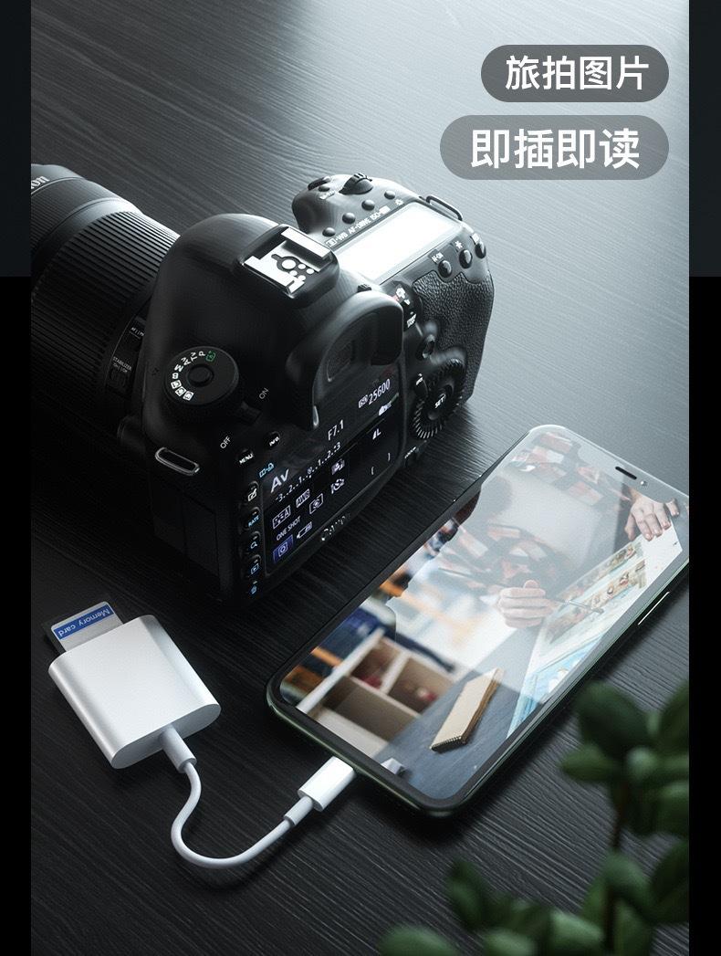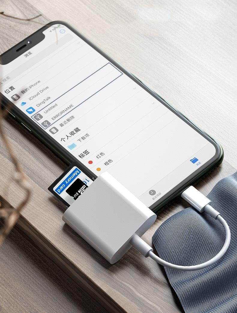 Adecuado para Adaptador Lightning de Teléfono Móvil Apple Lector de Tarjetas Transfronterizo Tf+Sd Dos en Uno Tipo Otg
