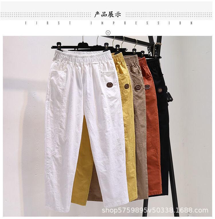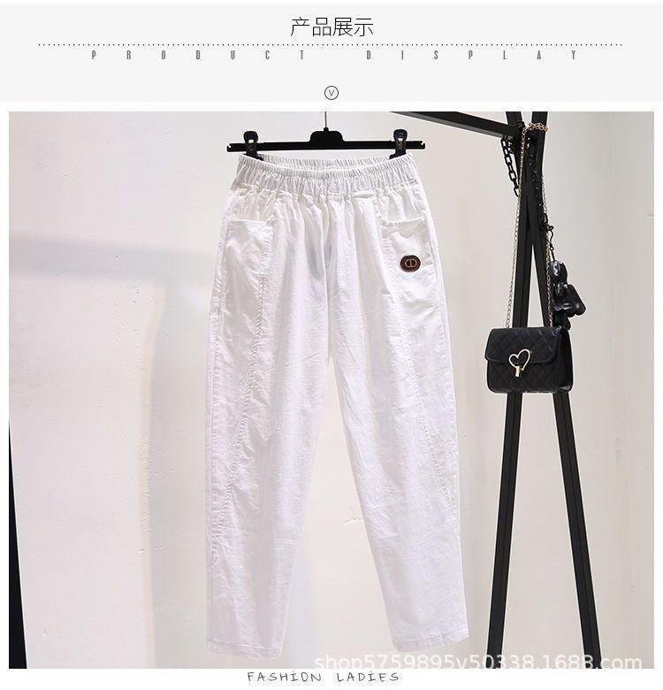 Pantalones Casuales para Mujer Primavera y Otoño 2025 Nuevo Estilo Pierna Ancha Sueltos Blancos Delgados Rectos Cintura Alta Algodón Puro Pantalones Harem Nueve Puntos Verano