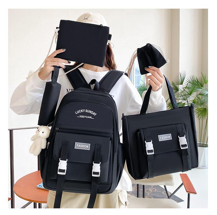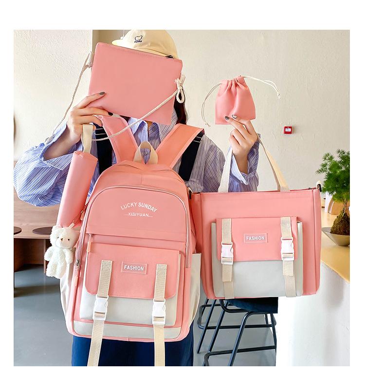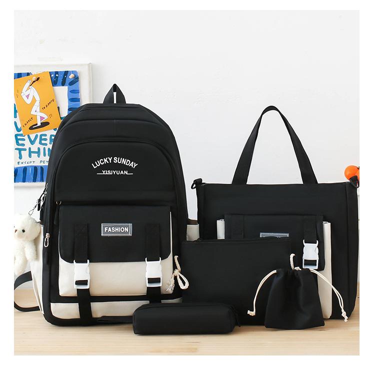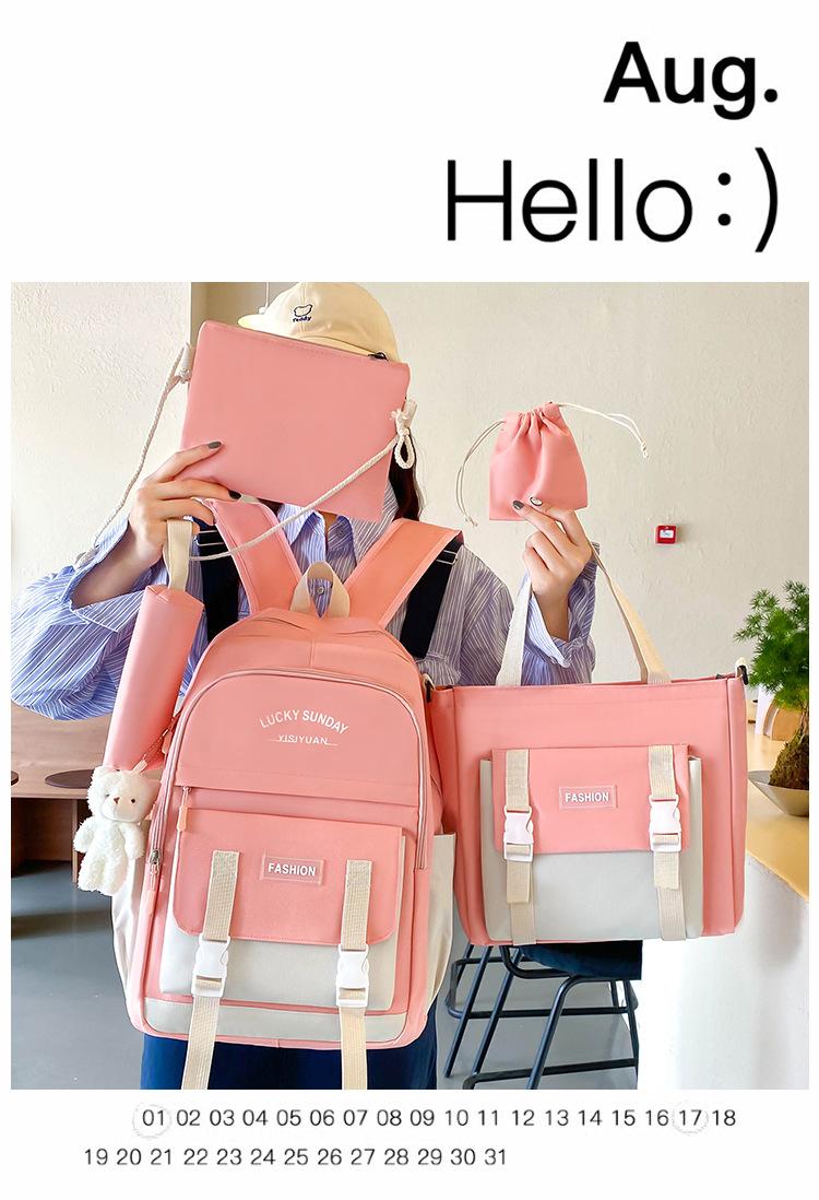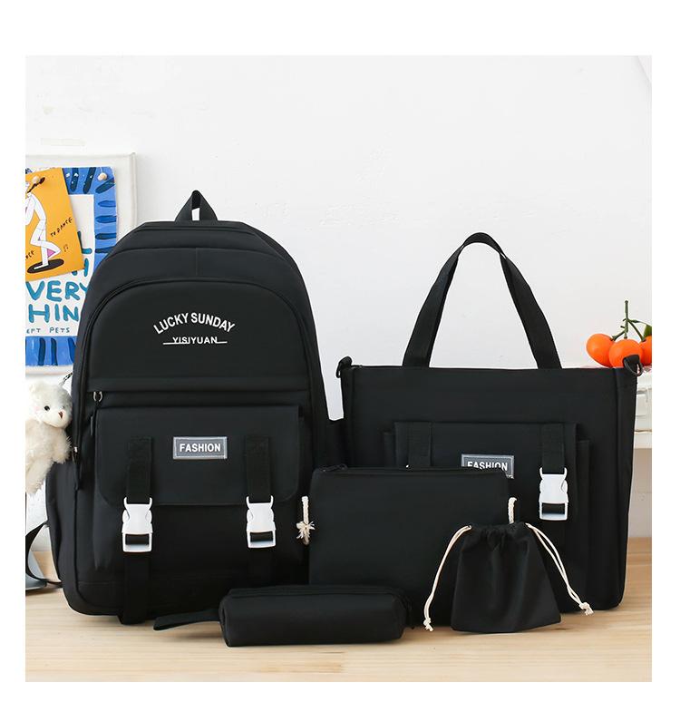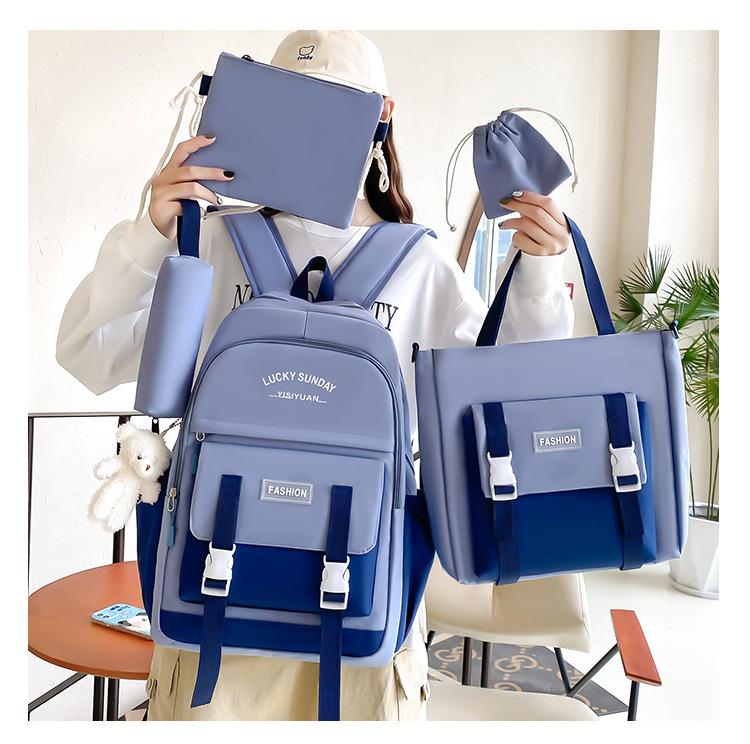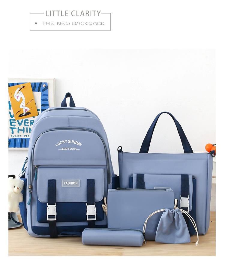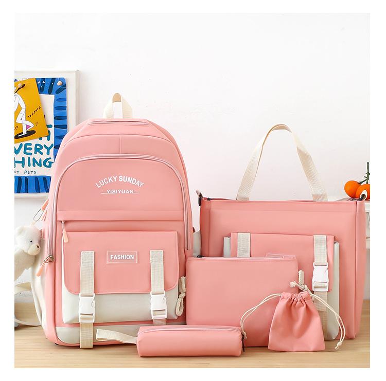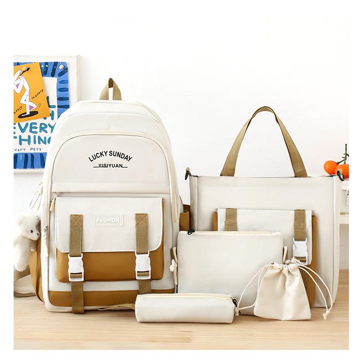 Mochila escolar sencilla Mori para mujer, estilo coreano, ligera, de gran capacidad, para escuela primaria, secundaria, portátil, tutorial, conjunto de cinco piezas