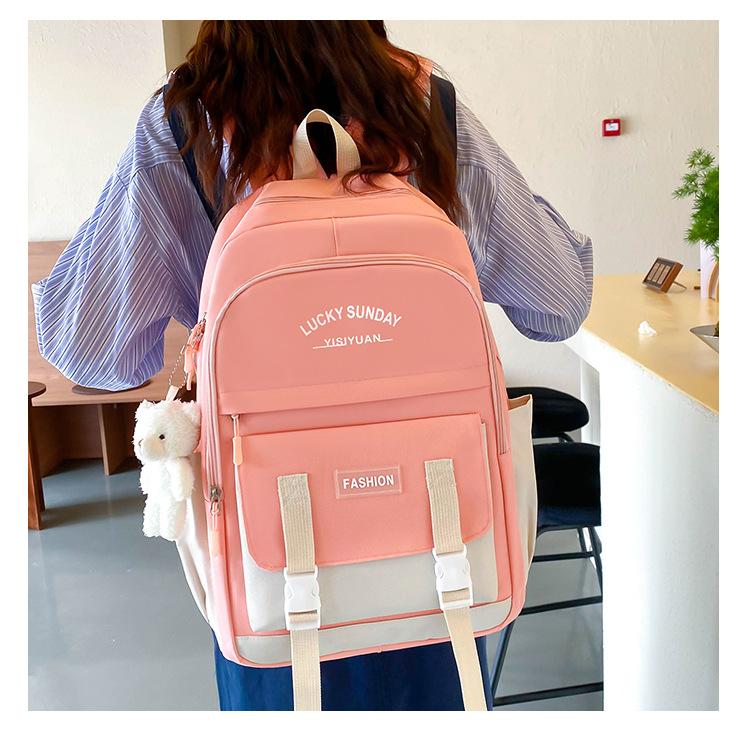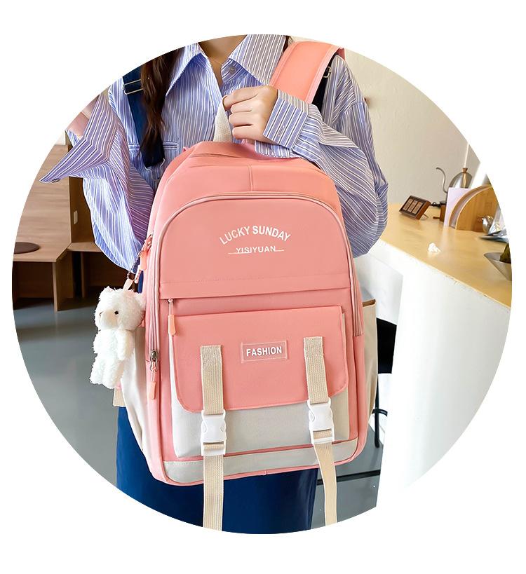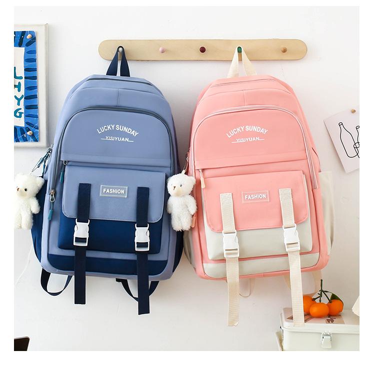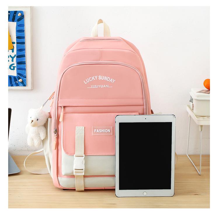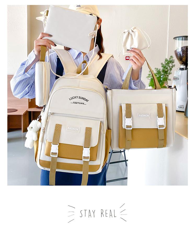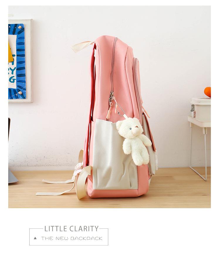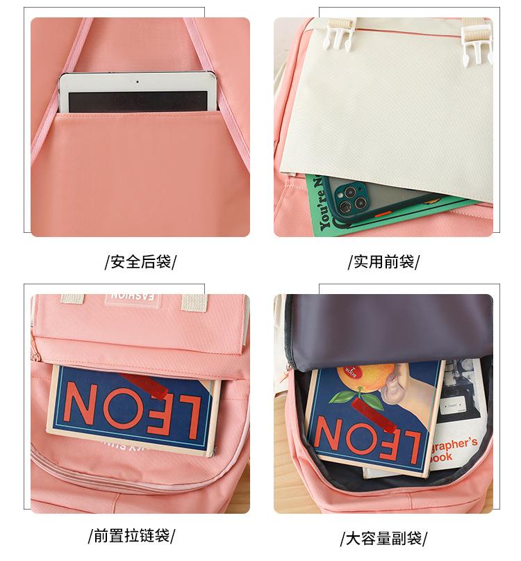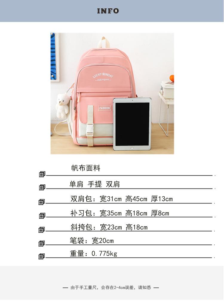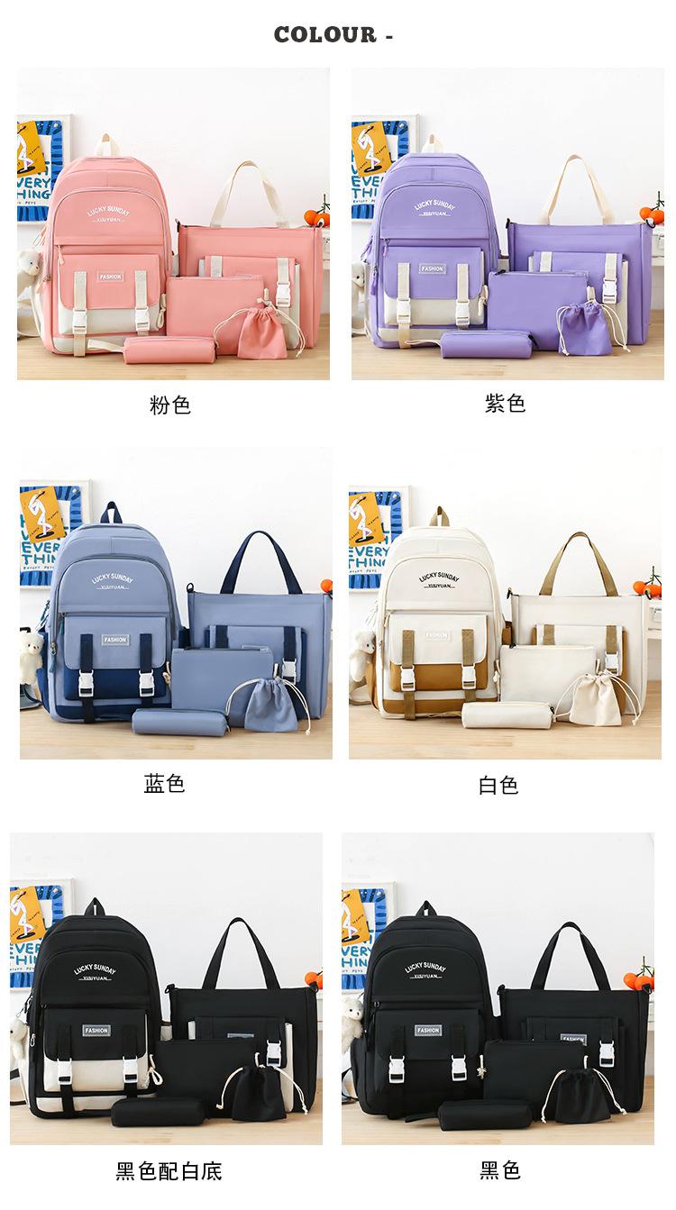 Mochila escolar sencilla Mori para mujer, estilo coreano, ligera, de gran capacidad, para escuela primaria, secundaria, portátil, tutorial, conjunto de cinco piezas