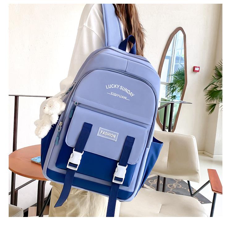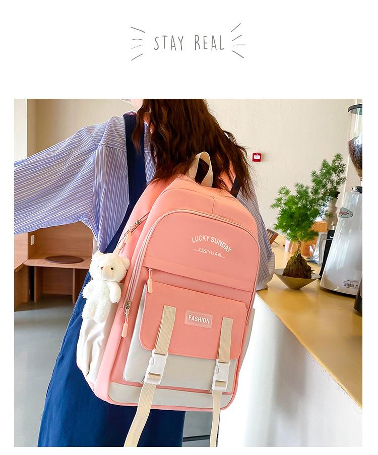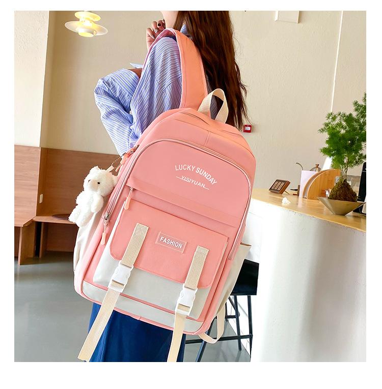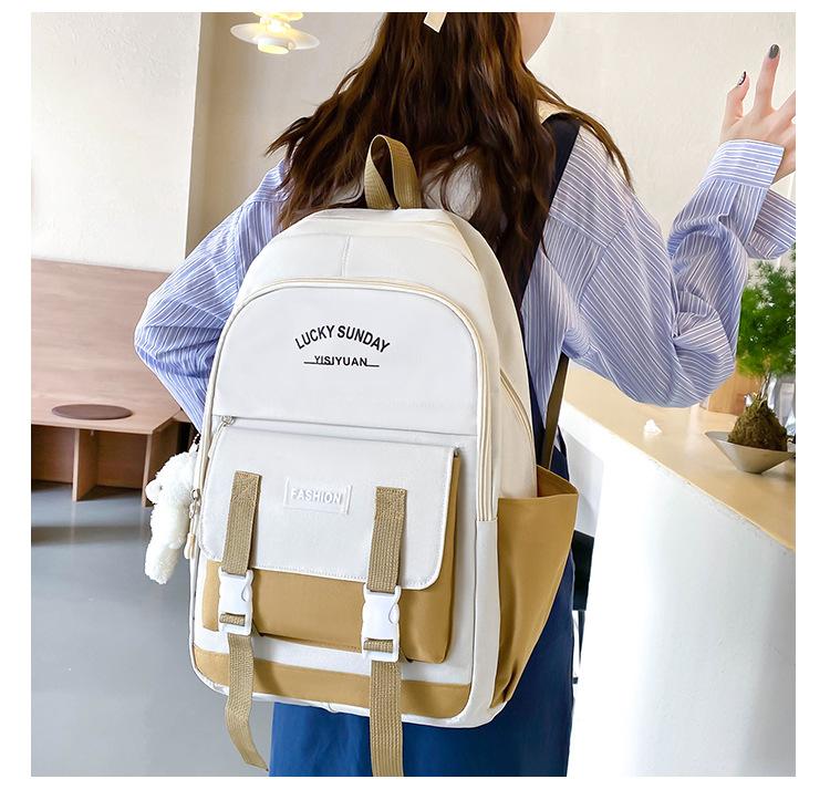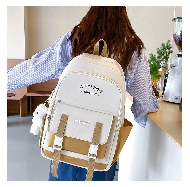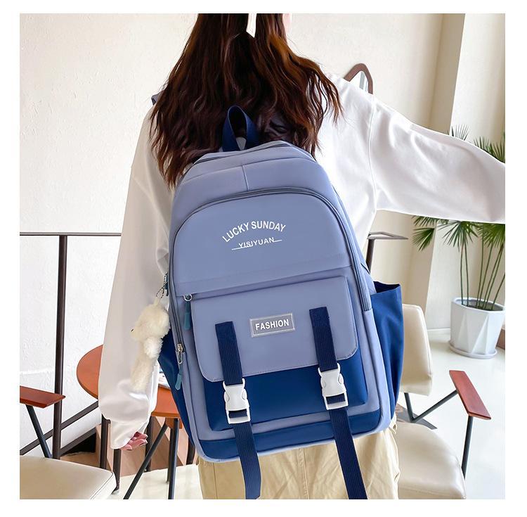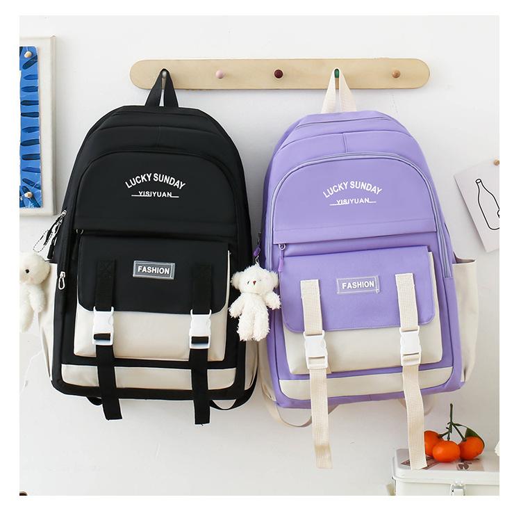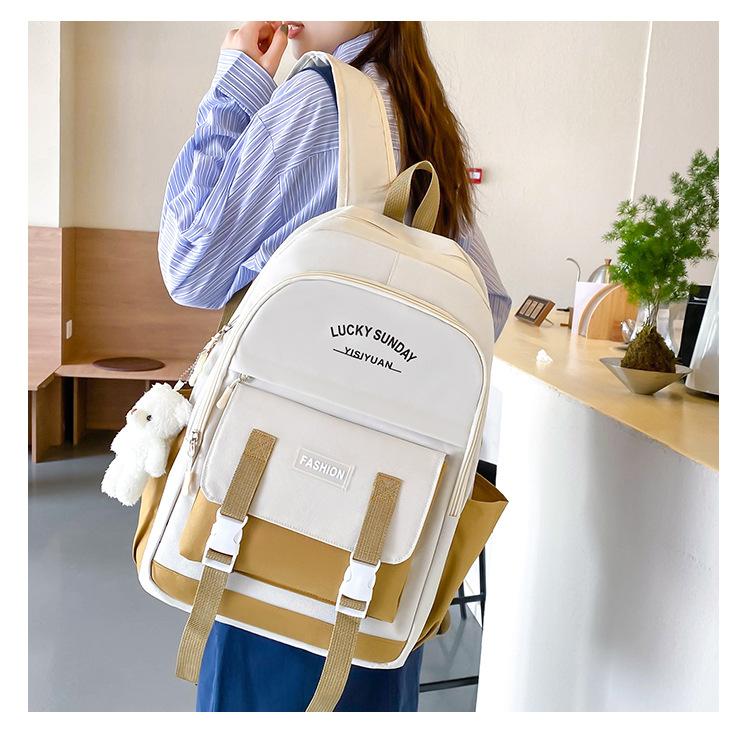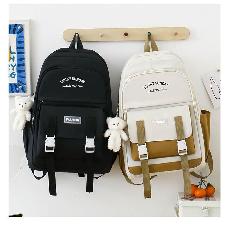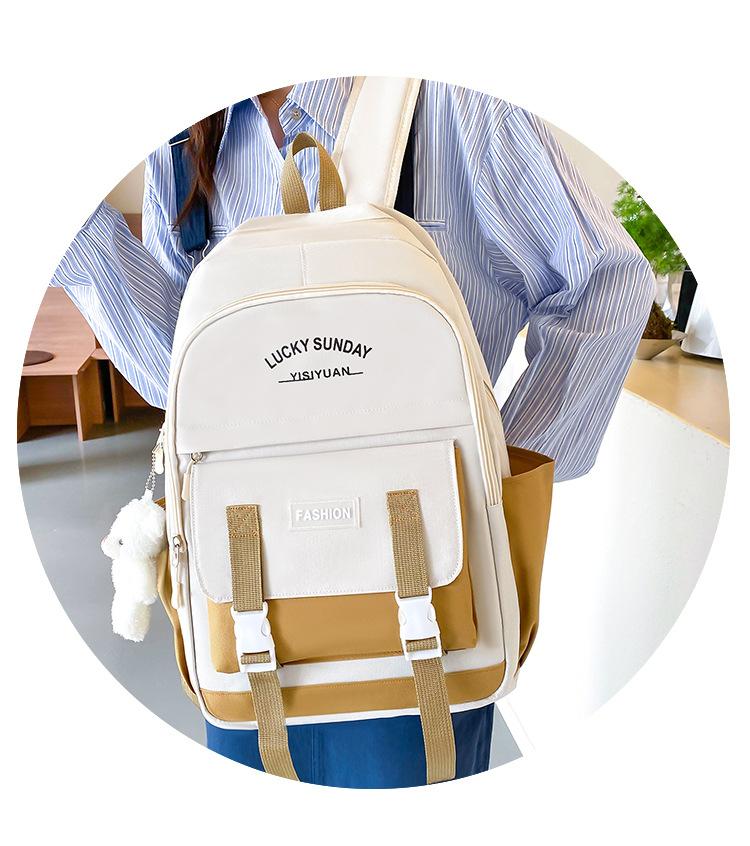 Mochila escolar sencilla Mori para mujer, estilo coreano, ligera, de gran capacidad, para escuela primaria, secundaria, portátil, tutorial, conjunto de cinco piezas