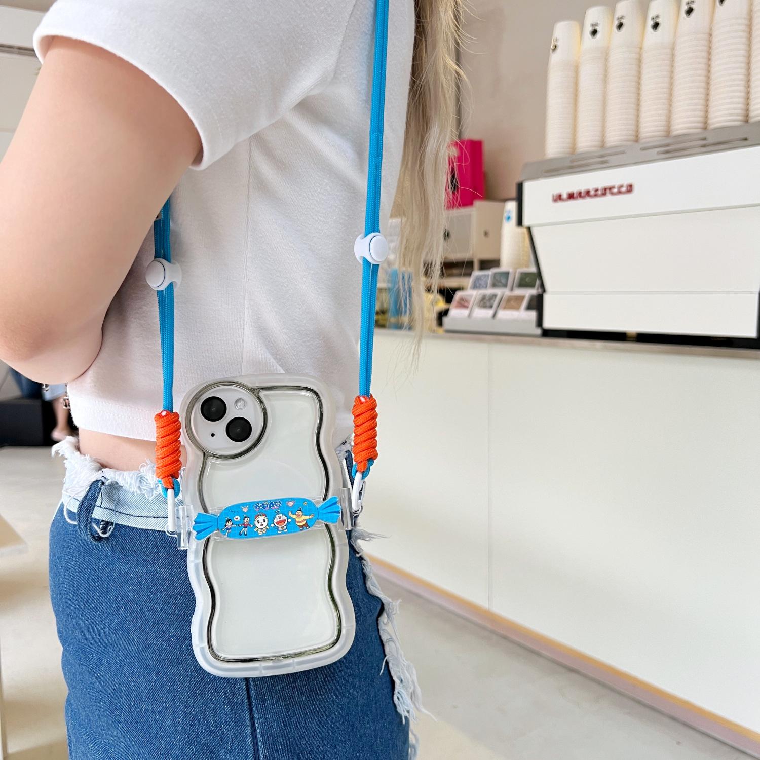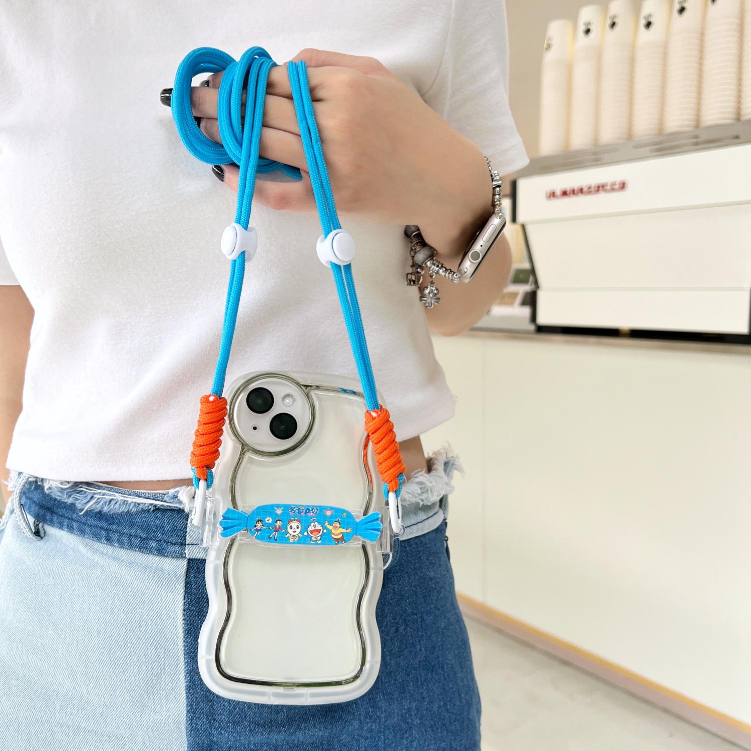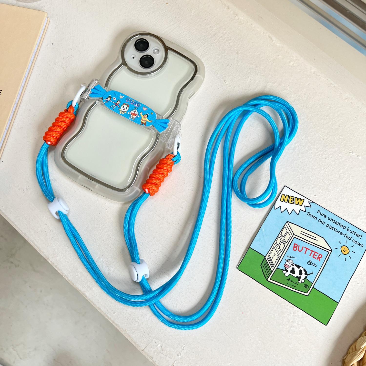 [Long candy back clip] Doraemon + blue and white Orange braided rope