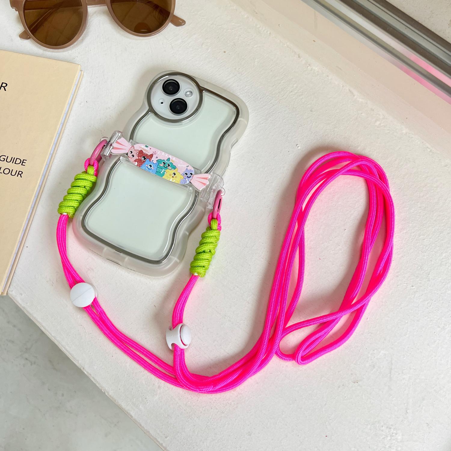 Adecuado para teléfonos Apple, Lanyard largo tipo caramelo con clip trasero, Portátil cruzado, Se puede llevar en la espalda, 16/14Promax Lindo clip trasero de fantasma