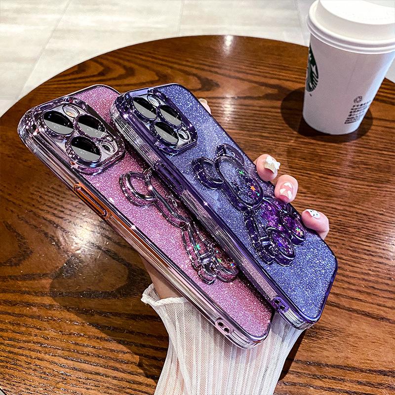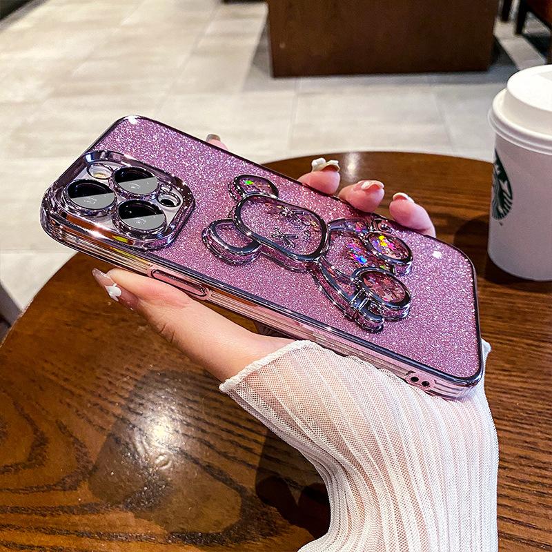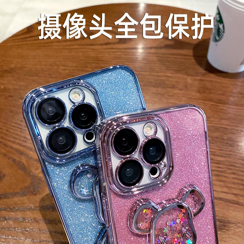 Adecuado para Funda de Teléfono Móvil Iphone15Pro Brillo de Arena Movediza Galvanoplastia Oso Violento Carcasa Blanda Apple 14 Cobertura Protectora Total 3