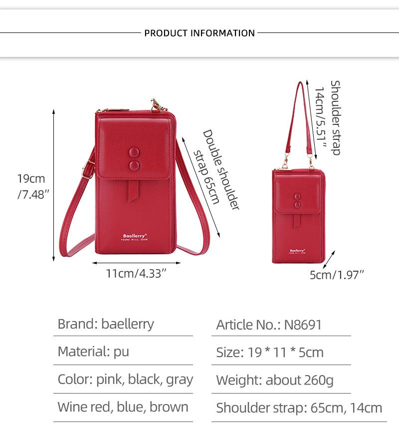Nuevo bolso para teléfono móvil de mujer Baellerry, bolso de hombro con cremallera y hebilla de succión coreana, cartera de moda para mujer, venta al por mayor