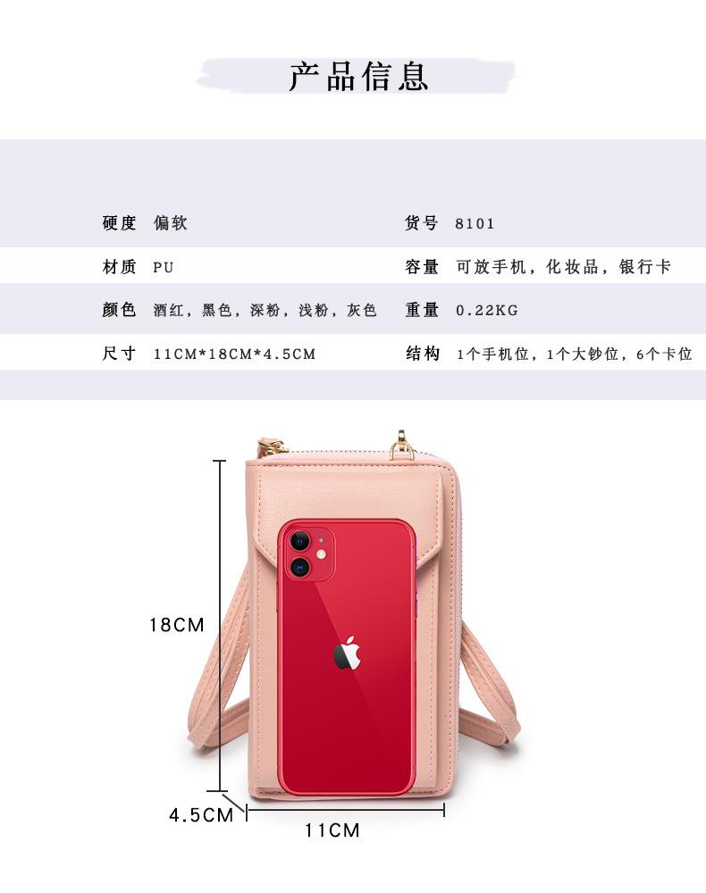 Estilo Coreano Nuevo Bolso para Teléfono Móvil Billetera de Mujer PU Monedero Largo Multifuncional Mini Bolso Bolso de Hombro Bolso Cruzado