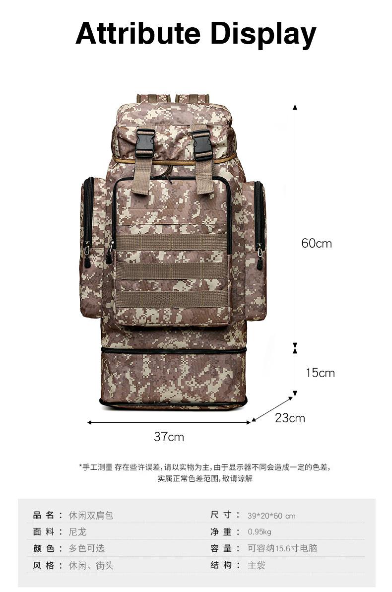 Bolsa Deportiva para Exterior Expandible de Gran Capacidad Mochila de Viaje para Hombre y Mujer Camuflaje Mochila de Equipaje Bolsa de Montañismo