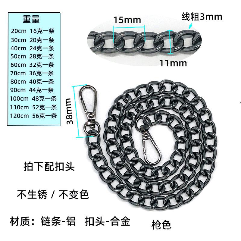 Silver L11143# chain with 3-point plate buckle, Light gold L11143# chain with 3-point plate buckle, Gun color ...