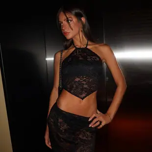 Amazon Más vendido Transfronterizo Nuevo Sexy Encaje Halter Espalda Descubierta Vendaje Chaleco Bodycon Transparente Set Falda Asimétrica