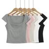 Playera Corta de Mujer Trendy 2022 Cadena Calado Sexy Ajustada Ombliguera Tierna Ajustada Popular en Internet Top de Manga Corta