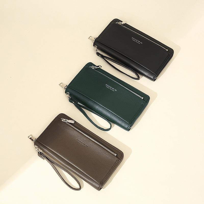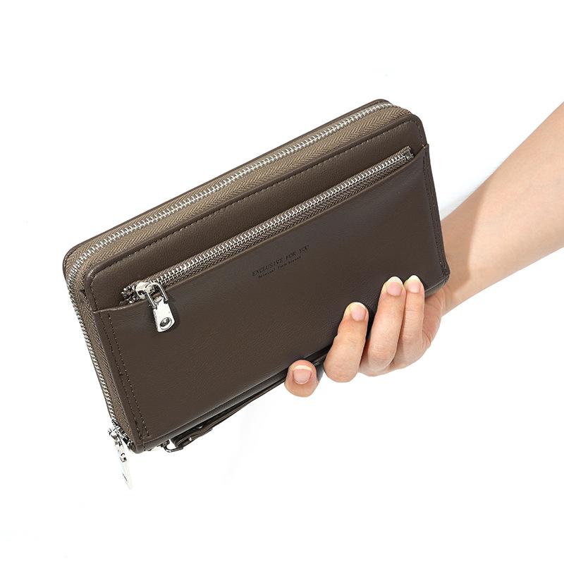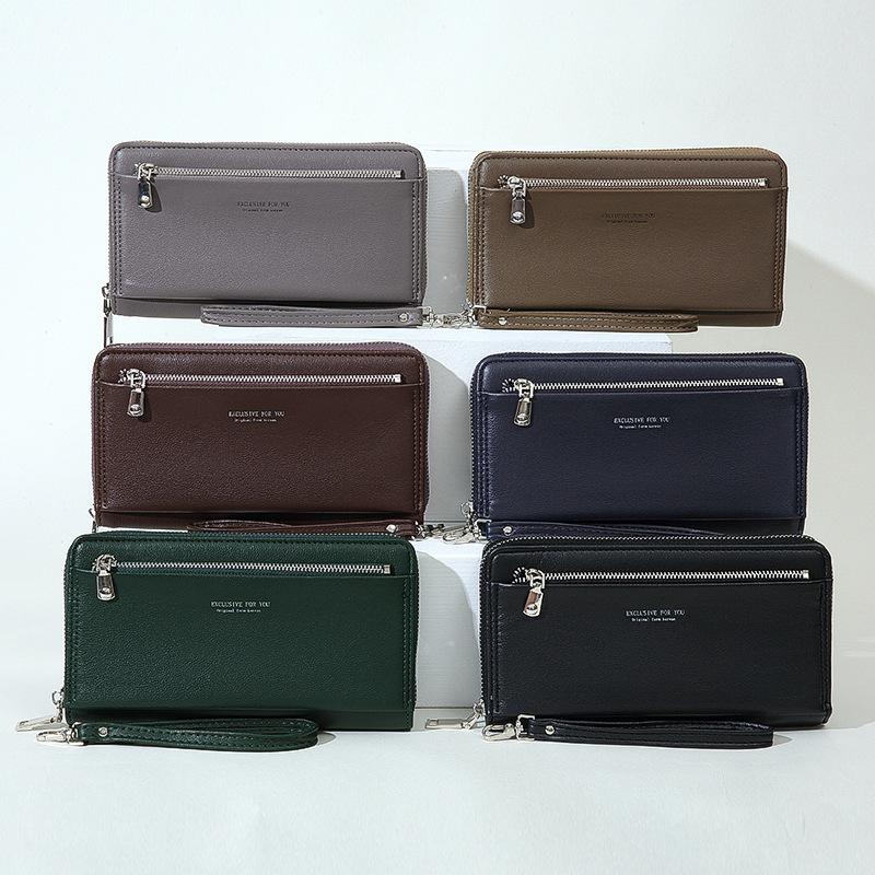 Billetera Larga para Hombre Moda Negocios Cierre Cremallera Multifuncional Clutch Bolsa para Teléfono Móvil Venta al por Mayor Transfronteriza