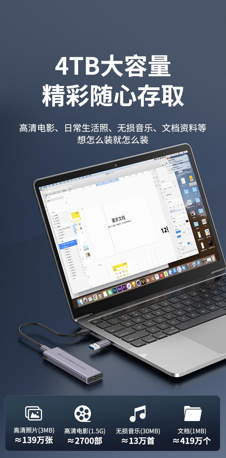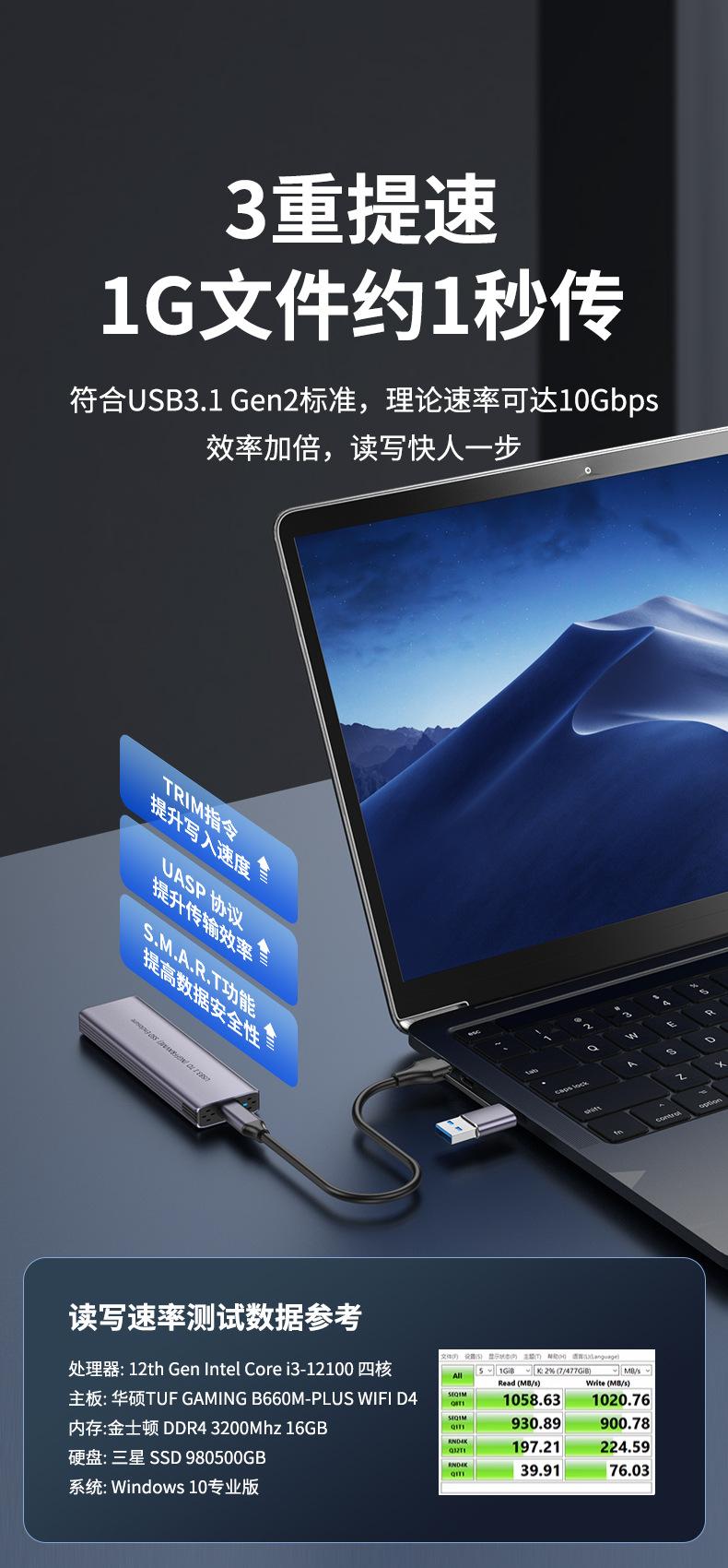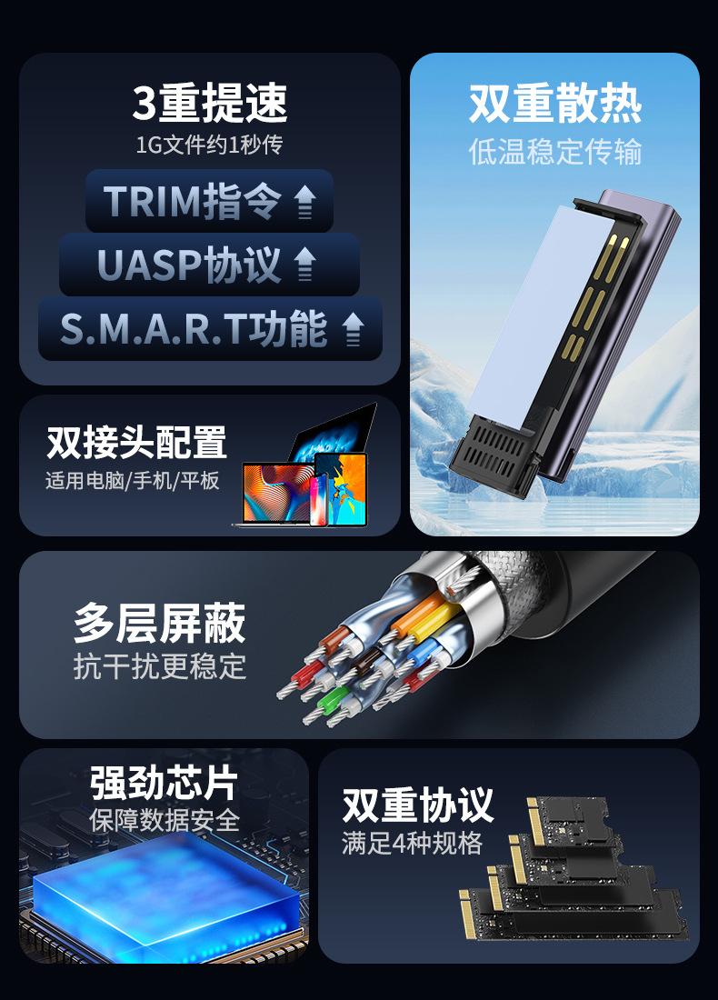 Protocolo Dual a Usb3.1 Lectura Caja M.2 Móvil de Estado Sólido Thunderbolt Sata SSD Externo Nvme Externo