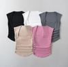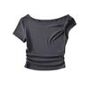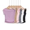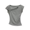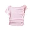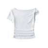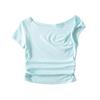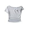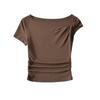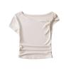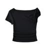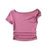 Camiseta de verano para mujer, estilo Spice Girl, con cuello oblicuo y hombros descubiertos, sexy, ajustada y de manga corta.