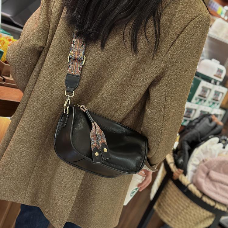Nuevo bolso de hombro de piel genuina para mujer primavera 2024, bolso cruzado, bolso baguette de mano de alta gama, bolso de axila de piel de vaca