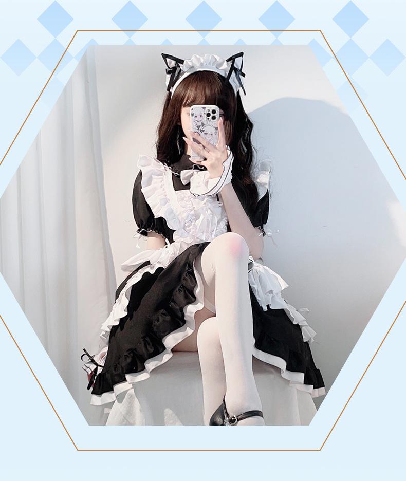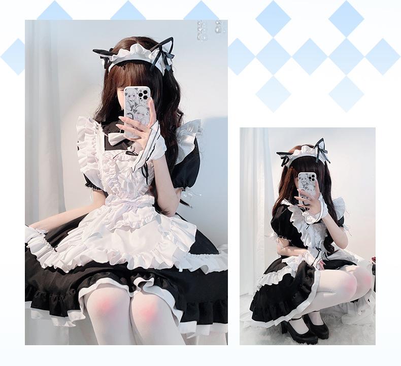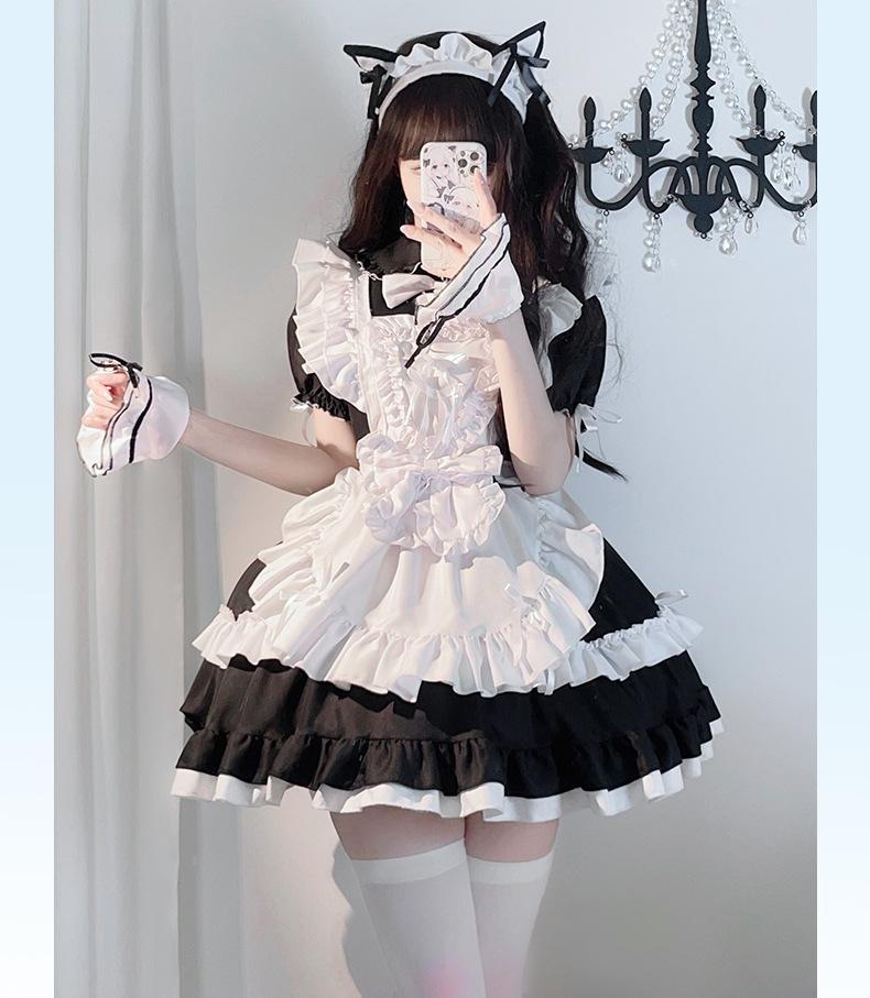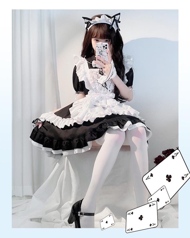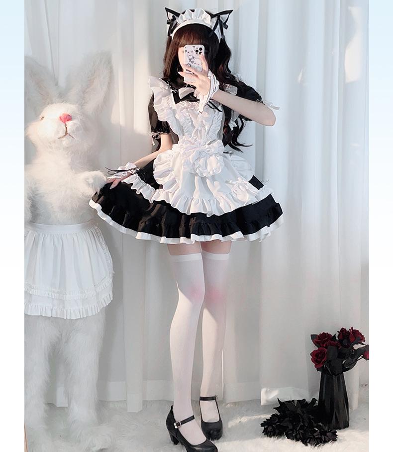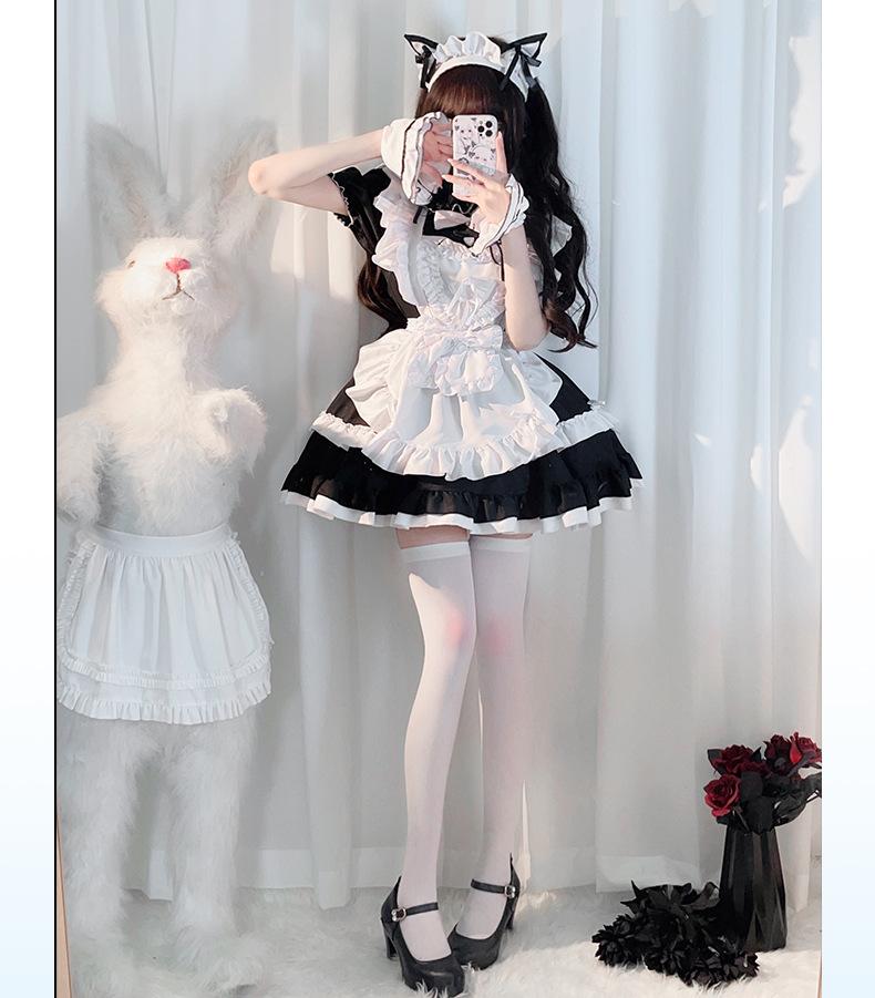 Compra Traje de Sirvienta Estilo Gótico Oscuro Blanco y Negro Lolita Anime Cosplay Palacio Cos Vestido de Chica Suave al por mayor en Joom.pro