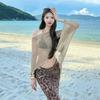 Blusa de Playa para Vacaciones en la Costa Cárdigan de Tirantes Irregulares para Mujer Sexy Perspectiva Camisa de Encaje Z782