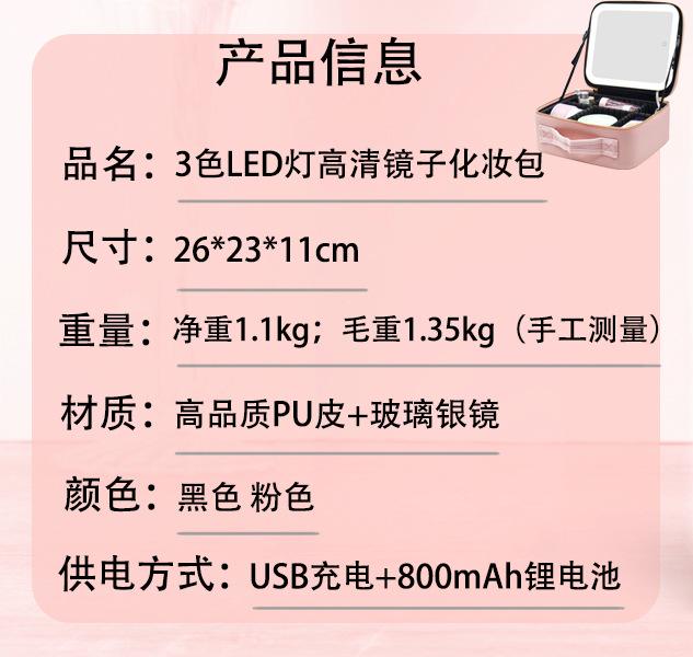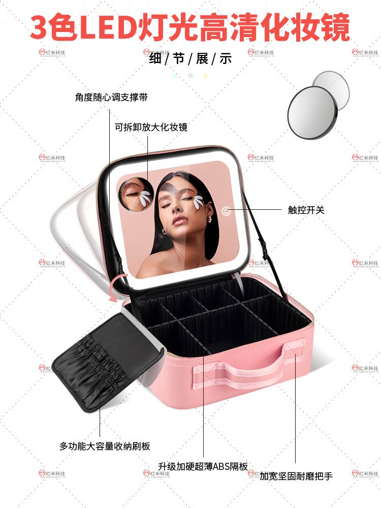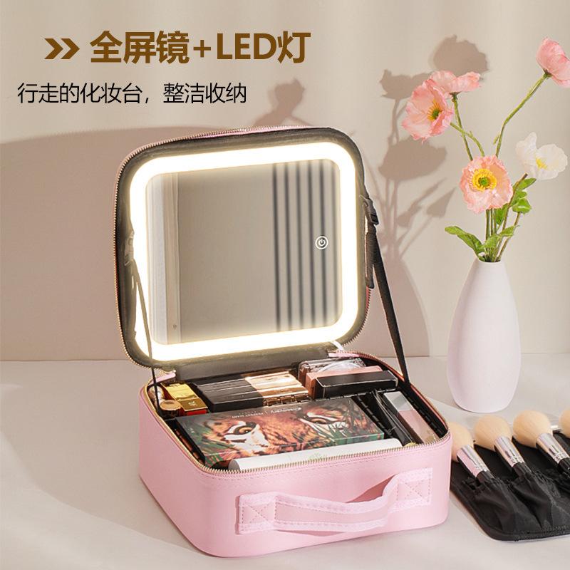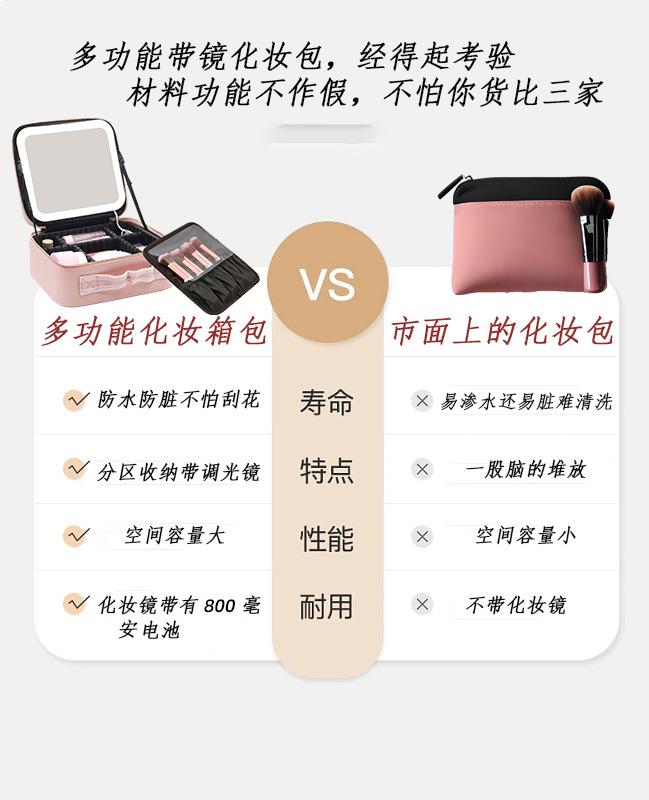 Cosmetic bag storage full screen, removable makeup brush partition, three-color light adjustment, light bright...