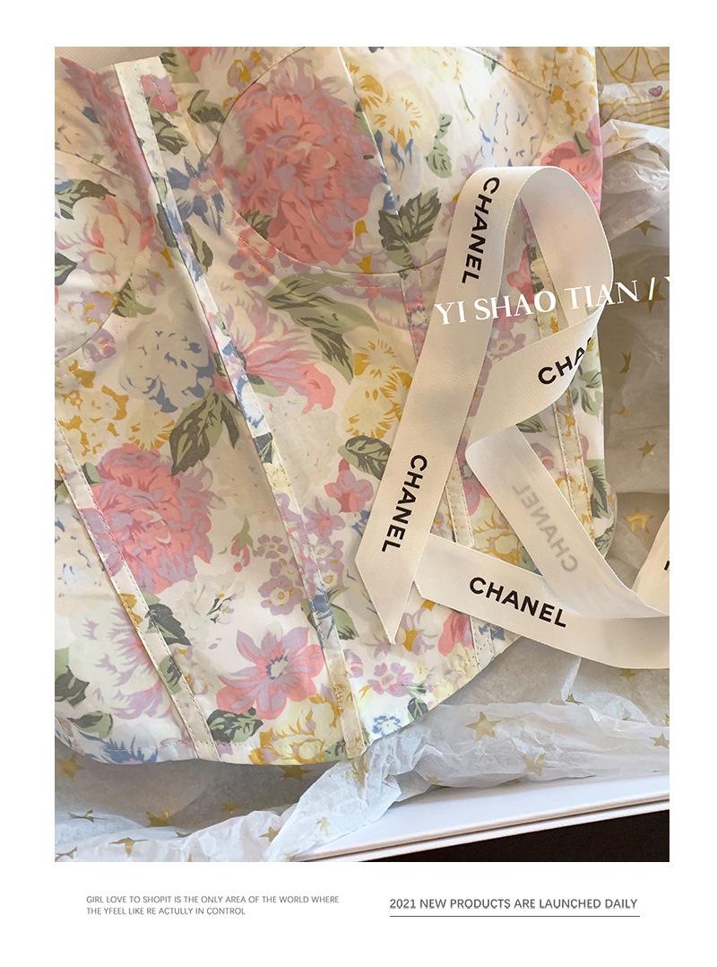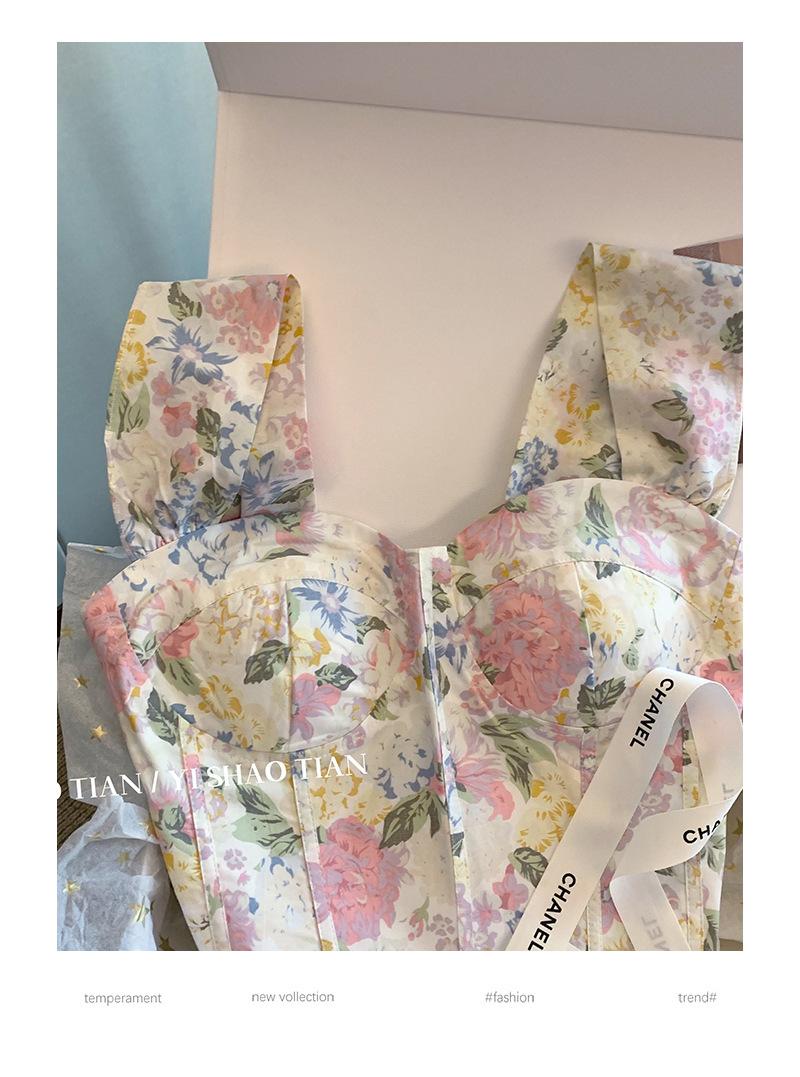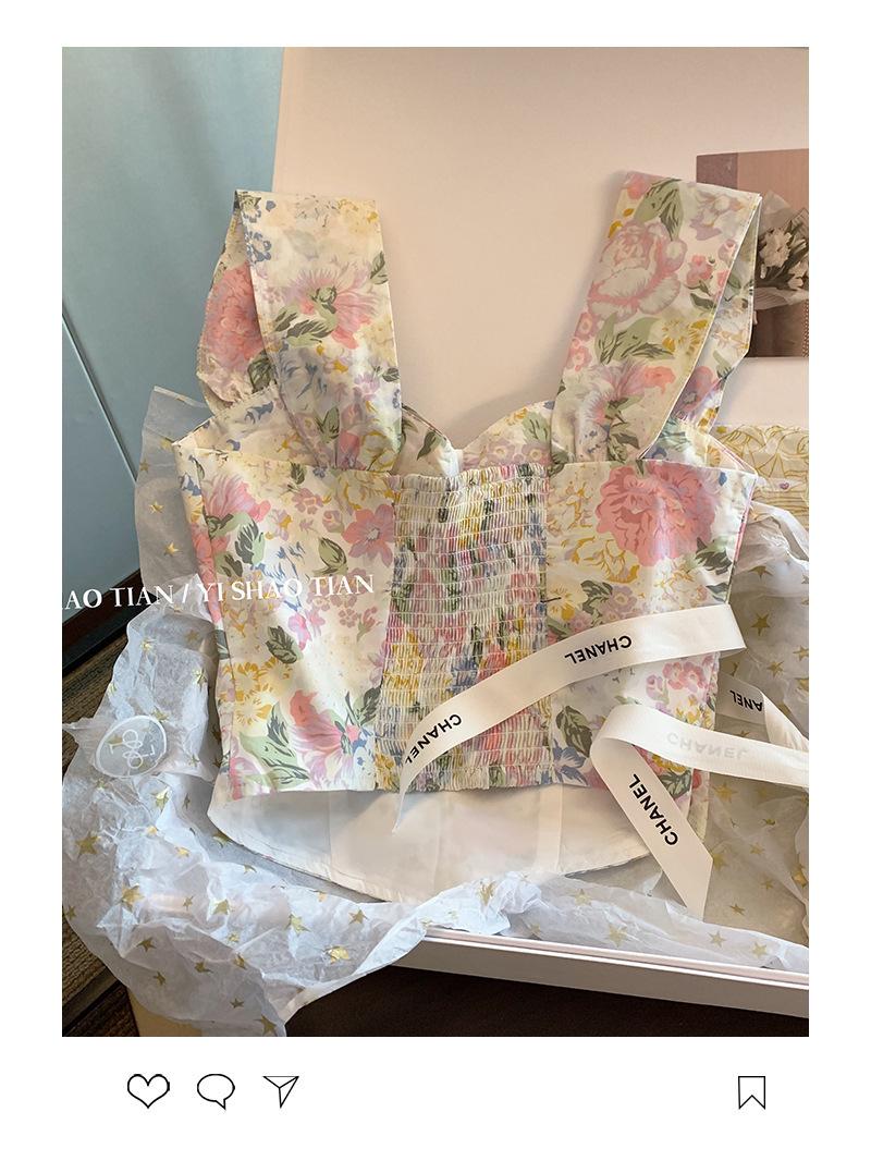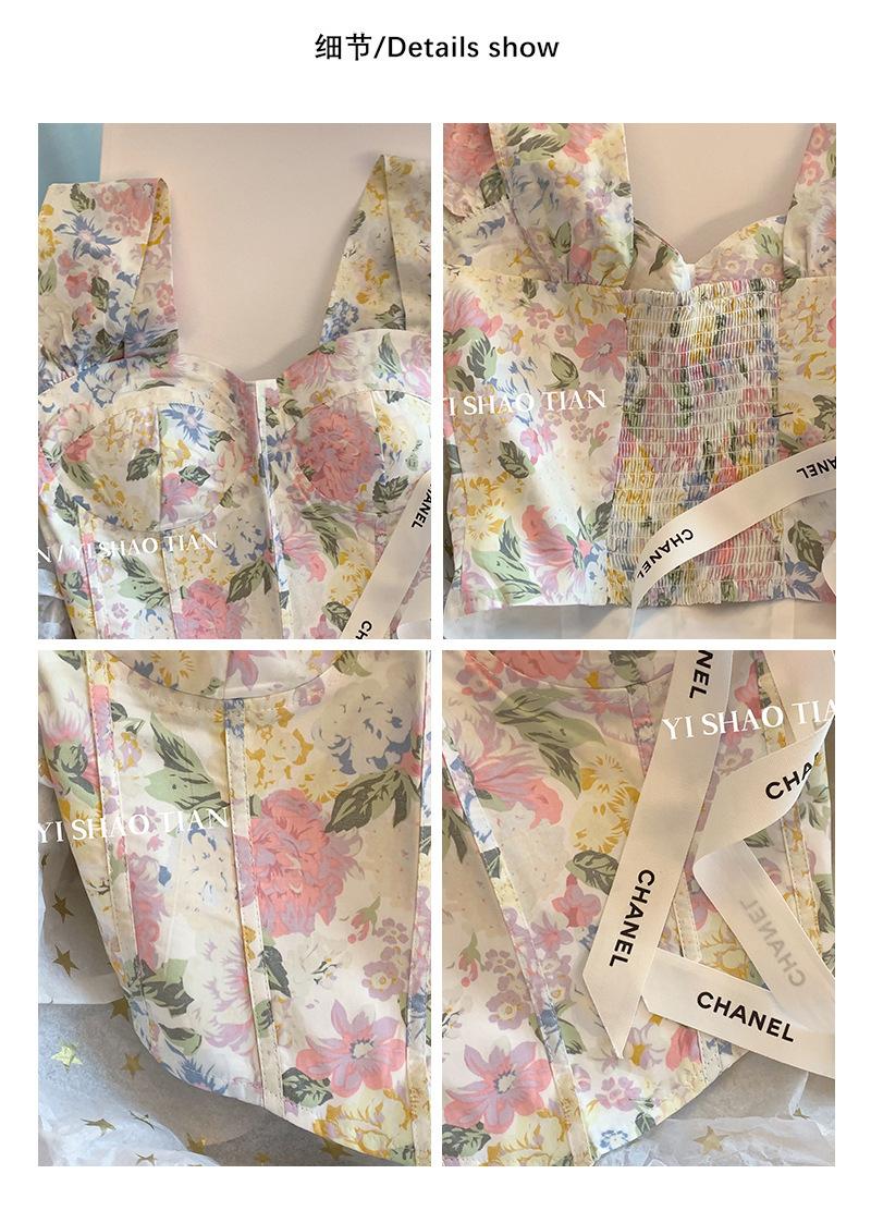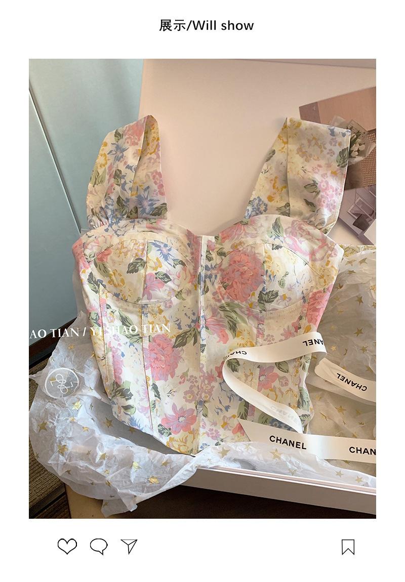 Camisola floral estilo deseo puro francés para mujer verano 2023 nuevo estilo ajuste ceñido ropa interior ropa exterior top dulce y picante