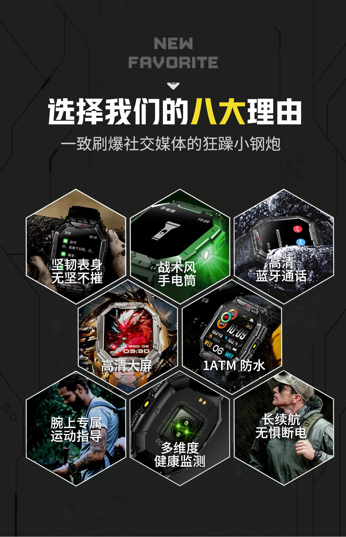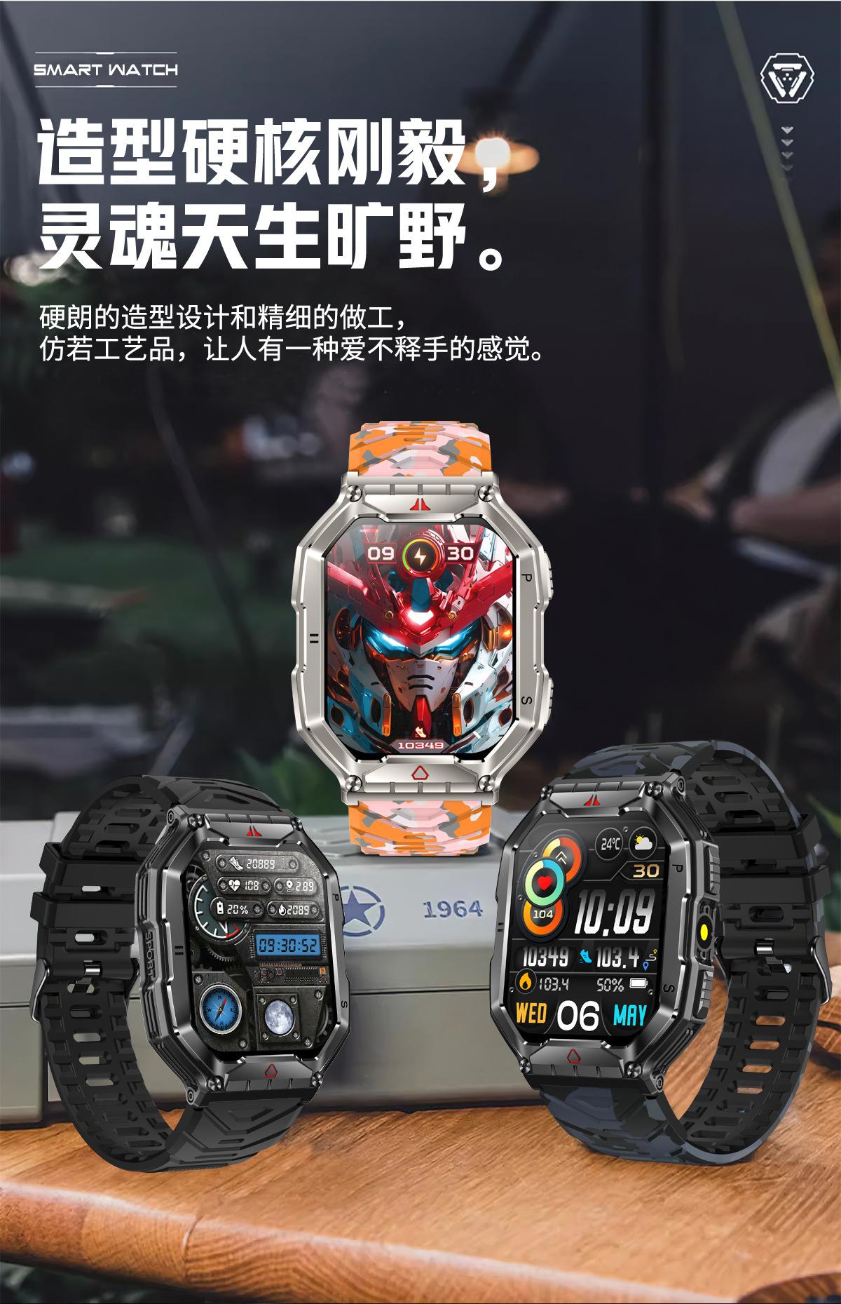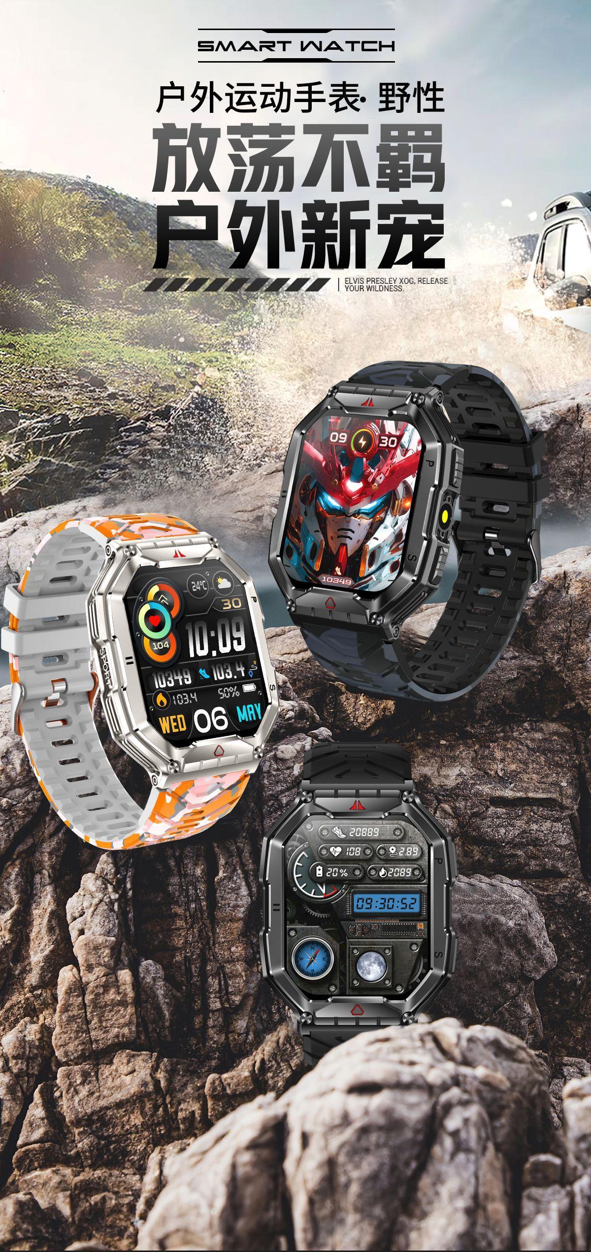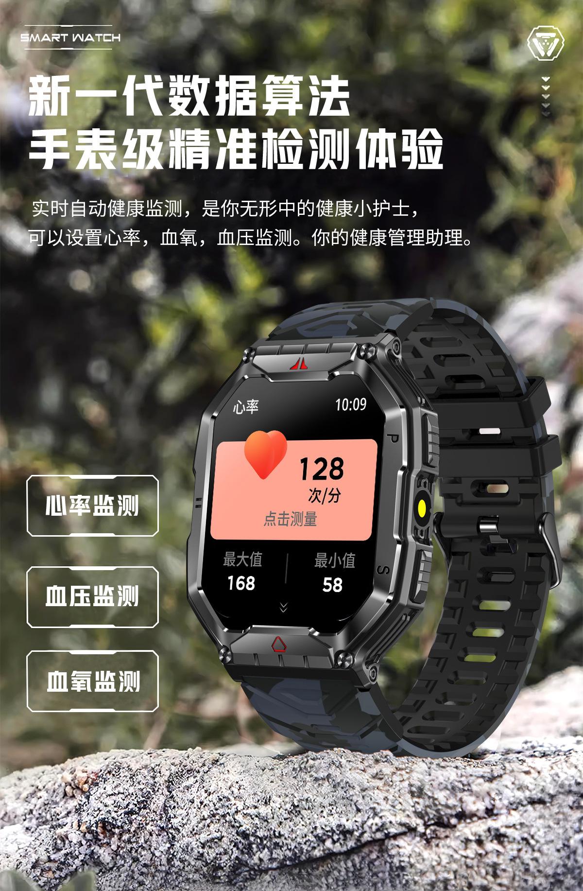 Nuevo reloj inteligente KR82 con Bluetooth, llamadas, brújula para exteriores, presión arterial en tiempo real, monitorización de frecuencia cardíaca y oxígeno en sangre.