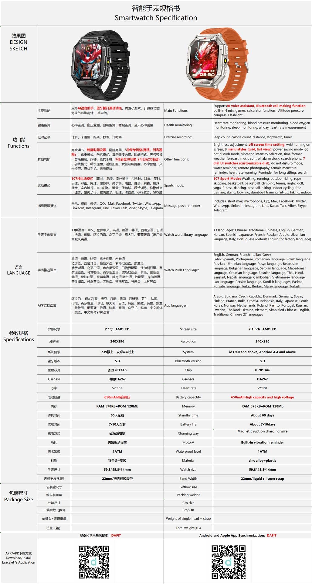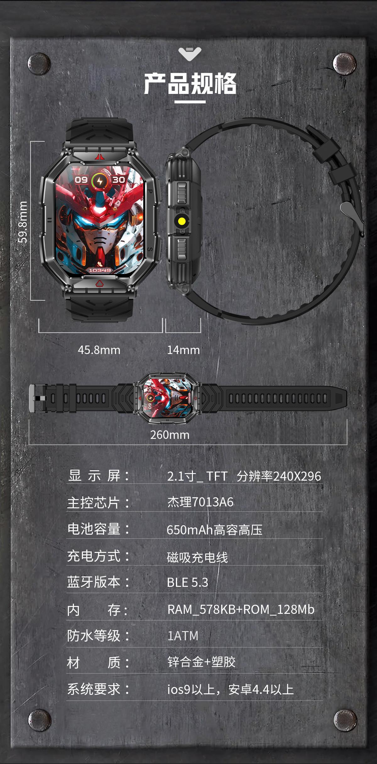 Watch, charging line, manual, packing box