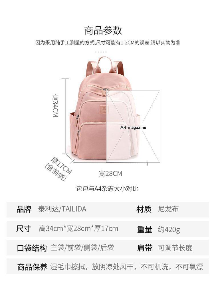 Mochila de nailon para mujer, nueva mochila impermeable de moda, impermeable, de gran capacidad, ligera, para viajes de ocio, bolso para estudiantes