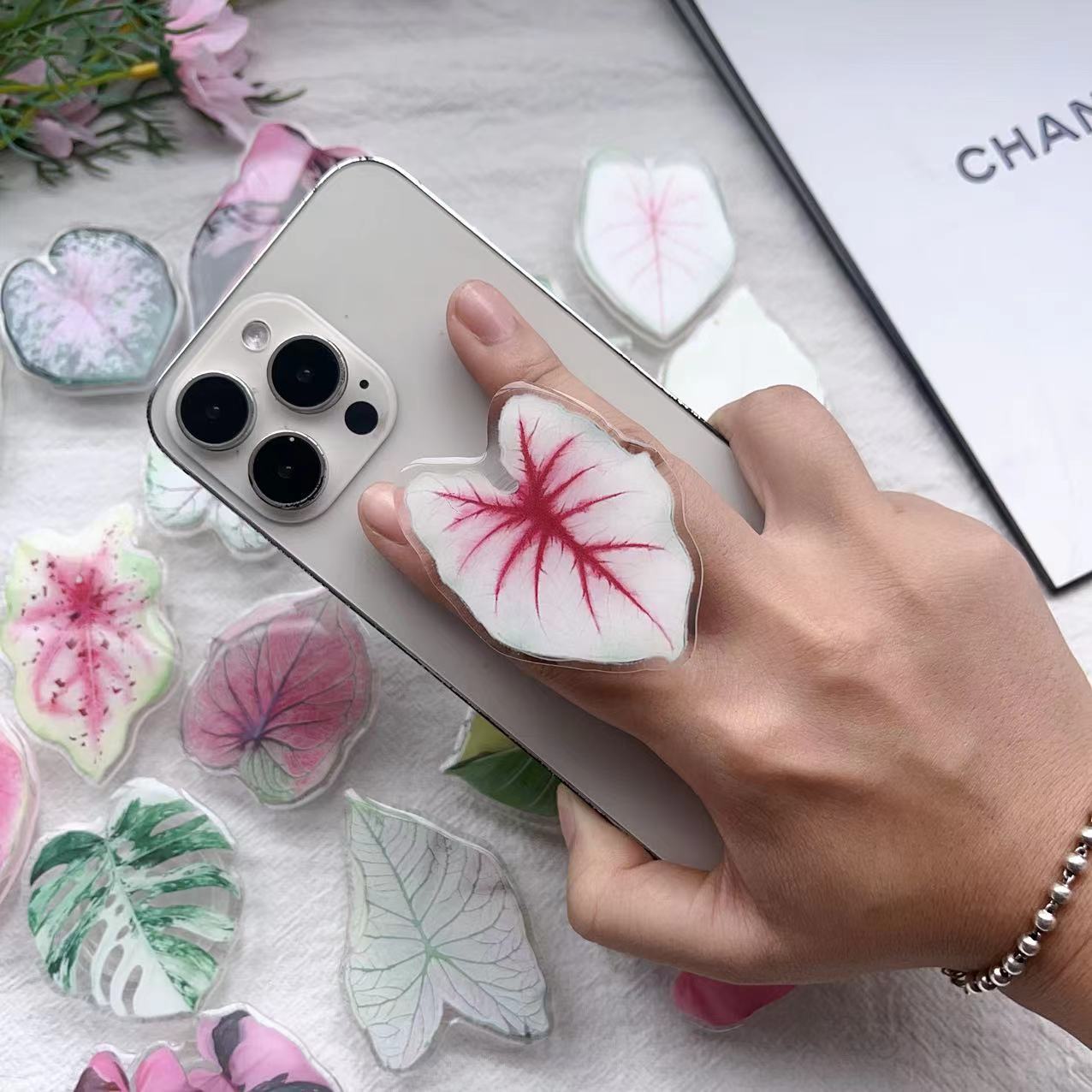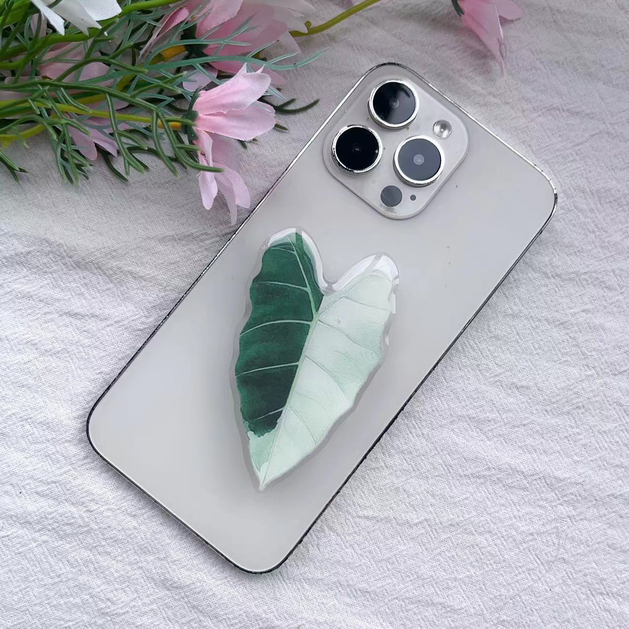Soporte creativo de airbag transparente con hoja de simulación, retráctil, perezoso, de escritorio, plegable, adhesivo, para teléfono móvil, personalización