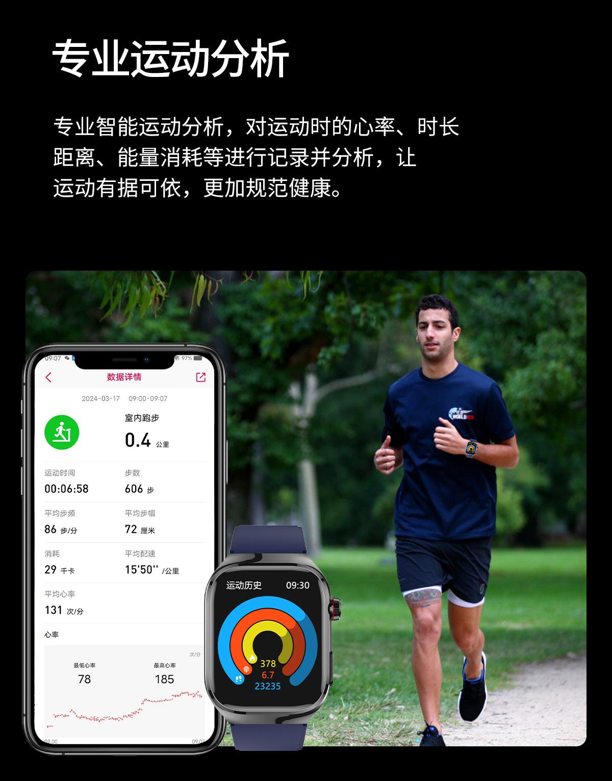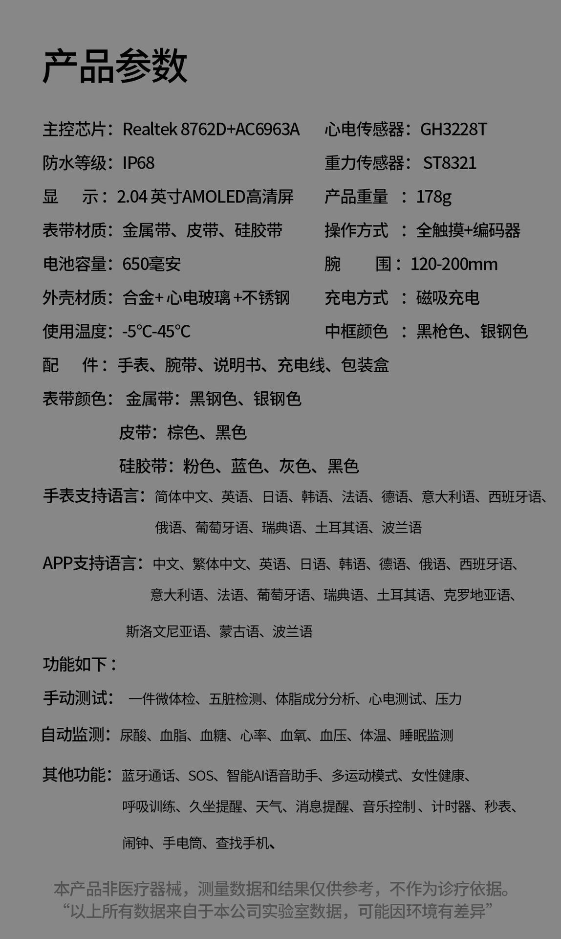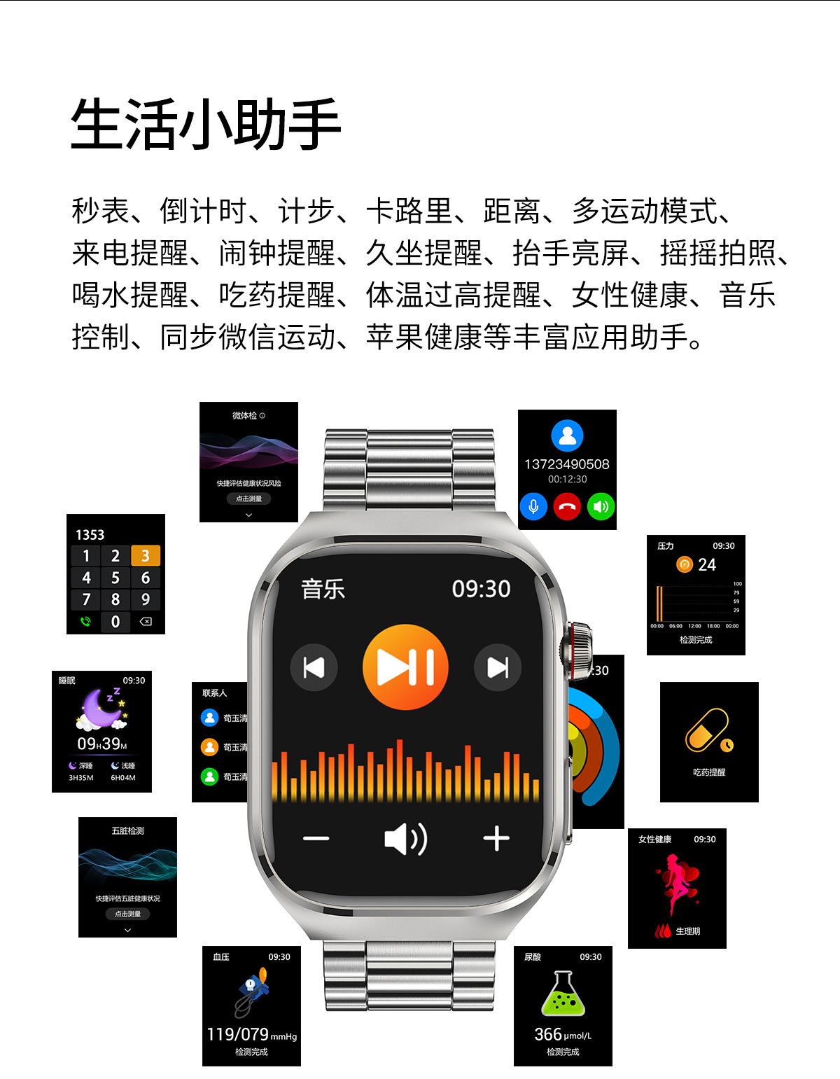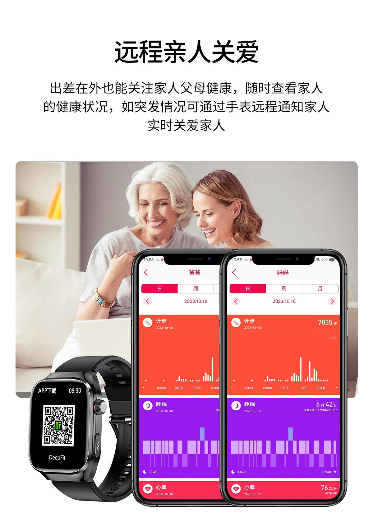 Step counting, Heart rate monitoring, Blood pressure measurement, Smart reminder, Remote control selfie, Sleep...