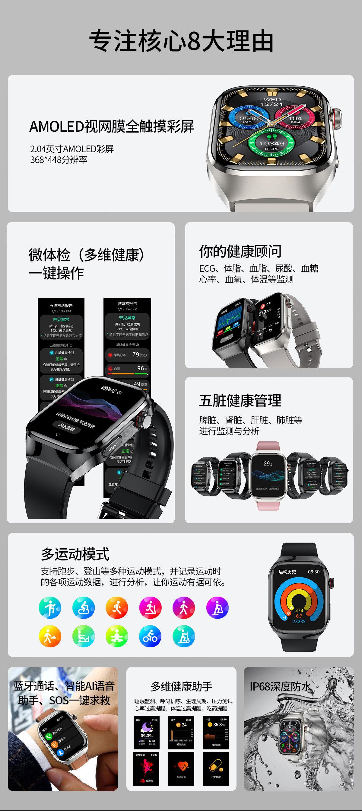 Reloj Inteligente TK16 Frecuencia Cardíaca Glucosa en Sangre Presión Arterial Oxígeno en Sangre Temperatura Corporal Monitoreo de la Salud del Sueño Medidor Táctil Pulsera Deportiva de Pasos