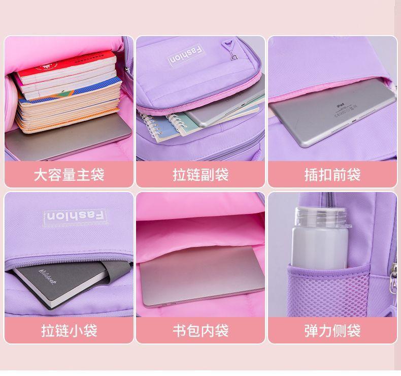 Mochila escolar para estudiantes de primaria, bonita mochila coreana para niñas, con múltiples bolsillos, para uno, dos, tres, cuatro, cinco y seis grados.