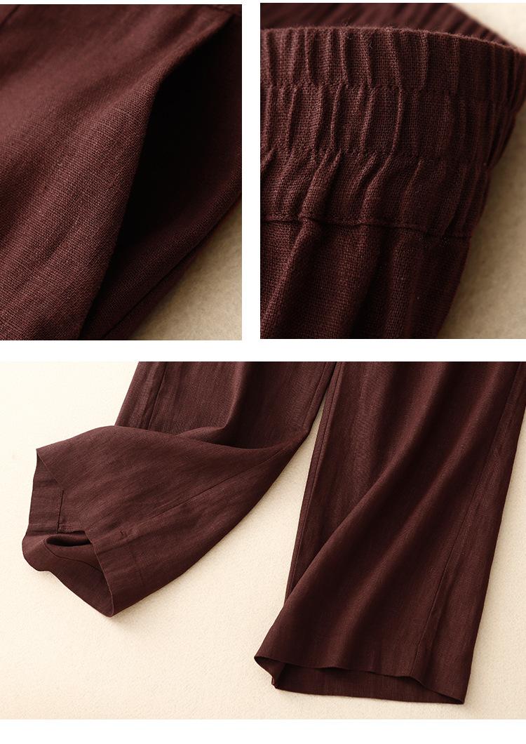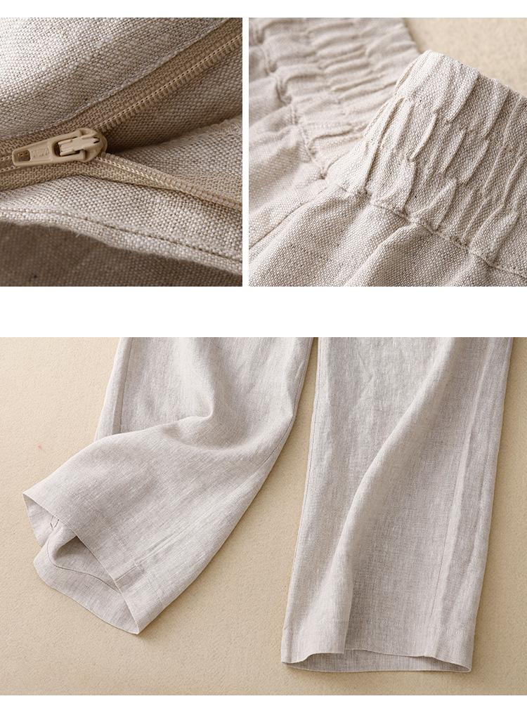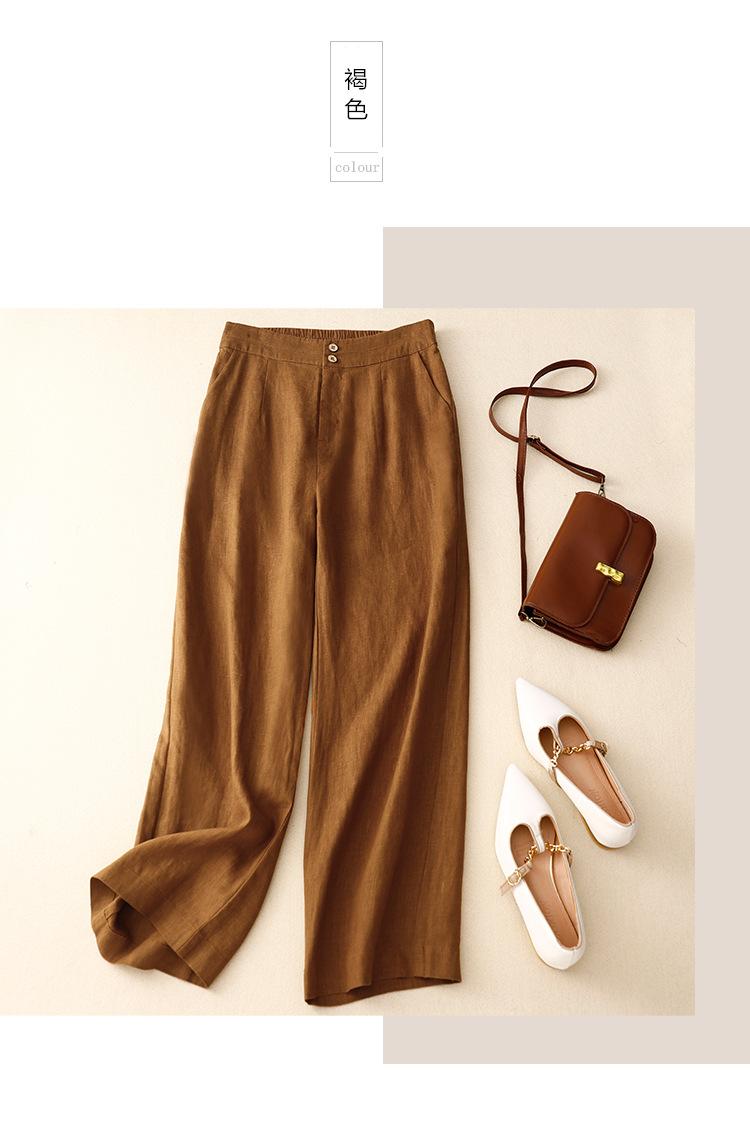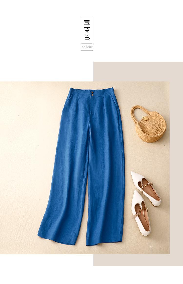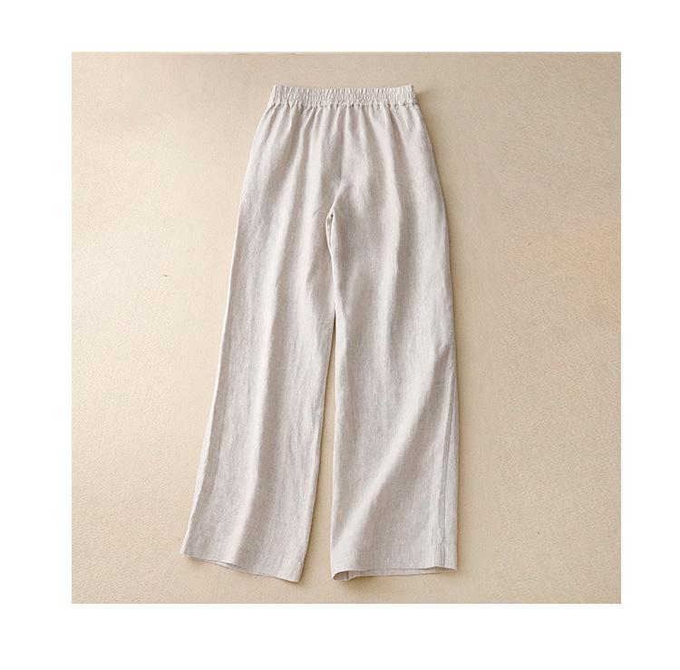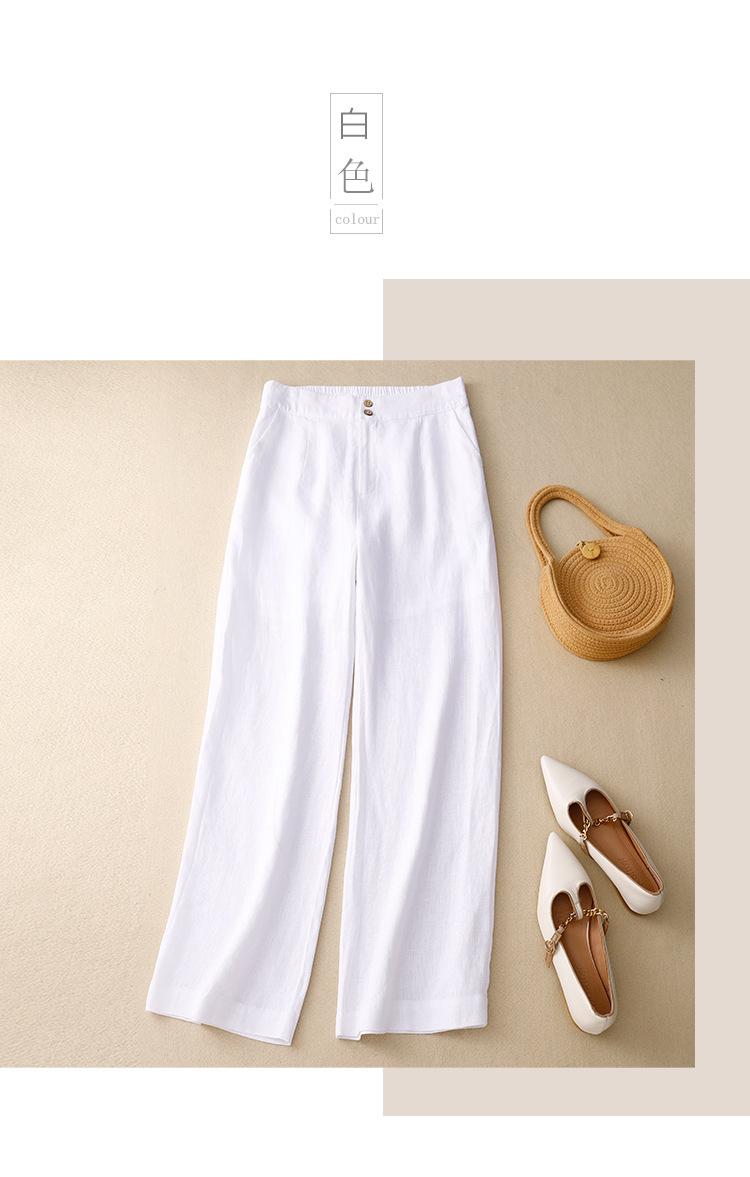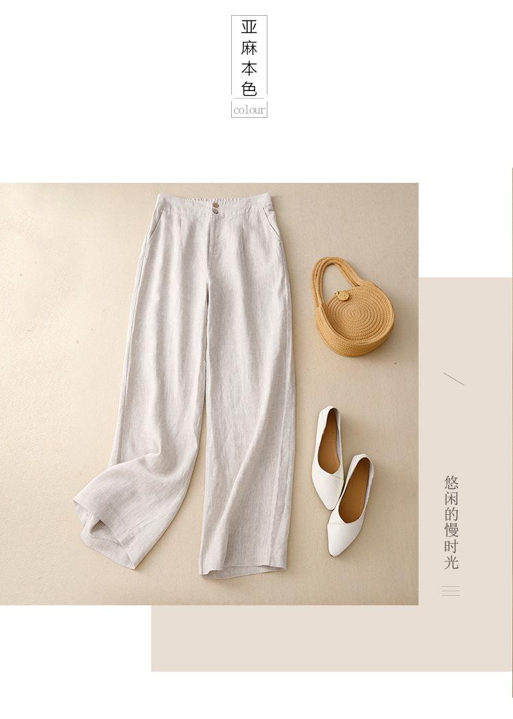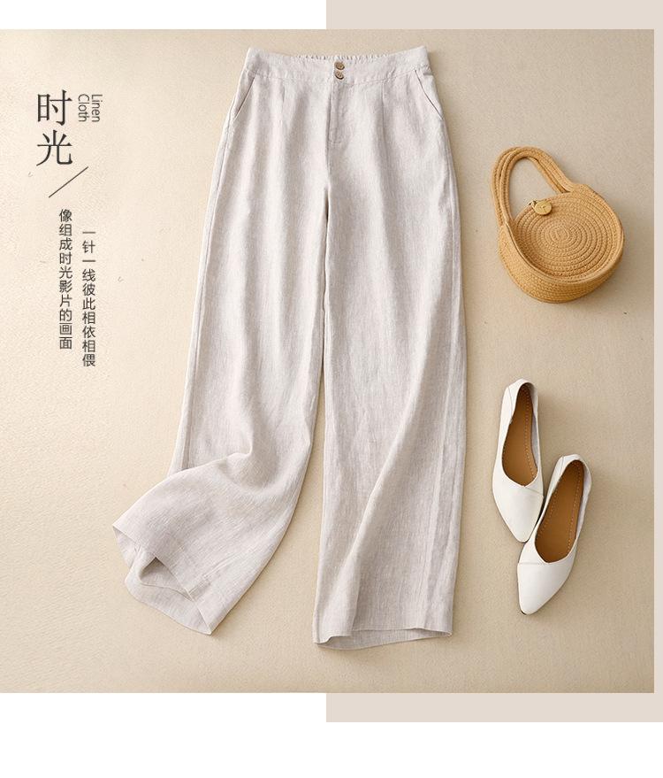 Foto Real de Pantalones Anchos de Lino para Mujer 2025 Nuevos Pantalones Casuales Verano Pantalones Rectos Adelgazantes Versátiles Pantalones de Lino para Mujer