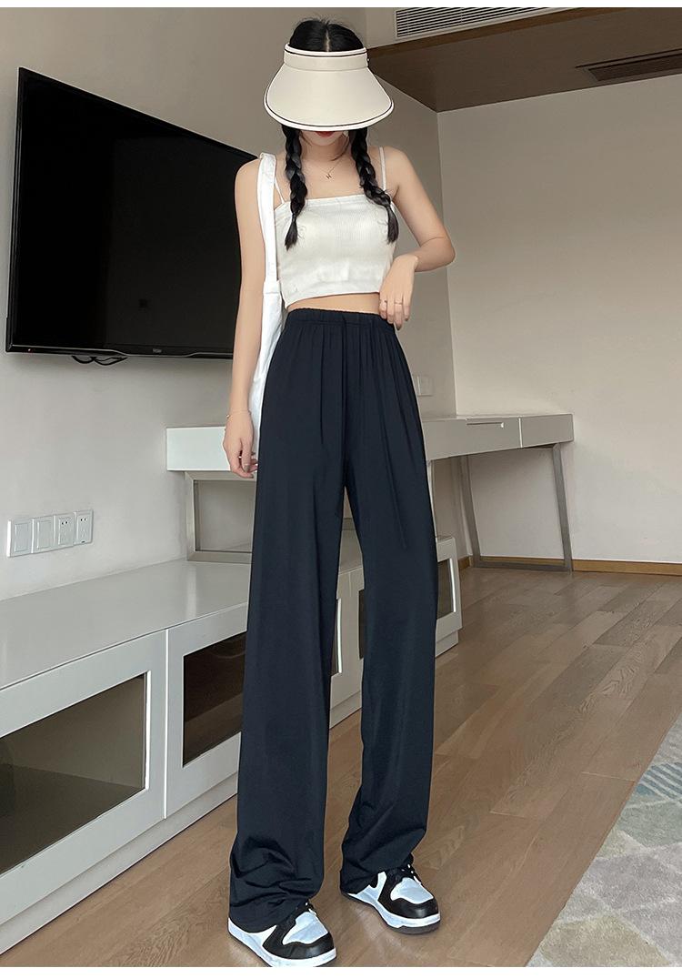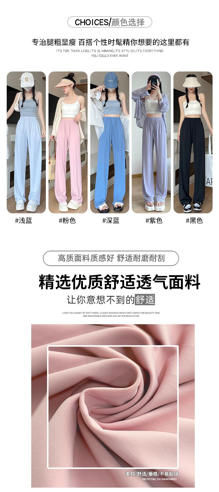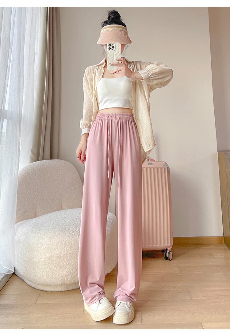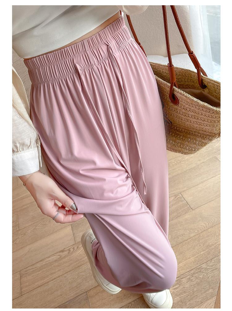Pantalones de nailon con protección solar Pantalones de mujer Pantalones de verano para mujer 2025 Nuevo estilo Drapeados Rectos Casuales Pantalones de pierna ancha de seda helada para mujer