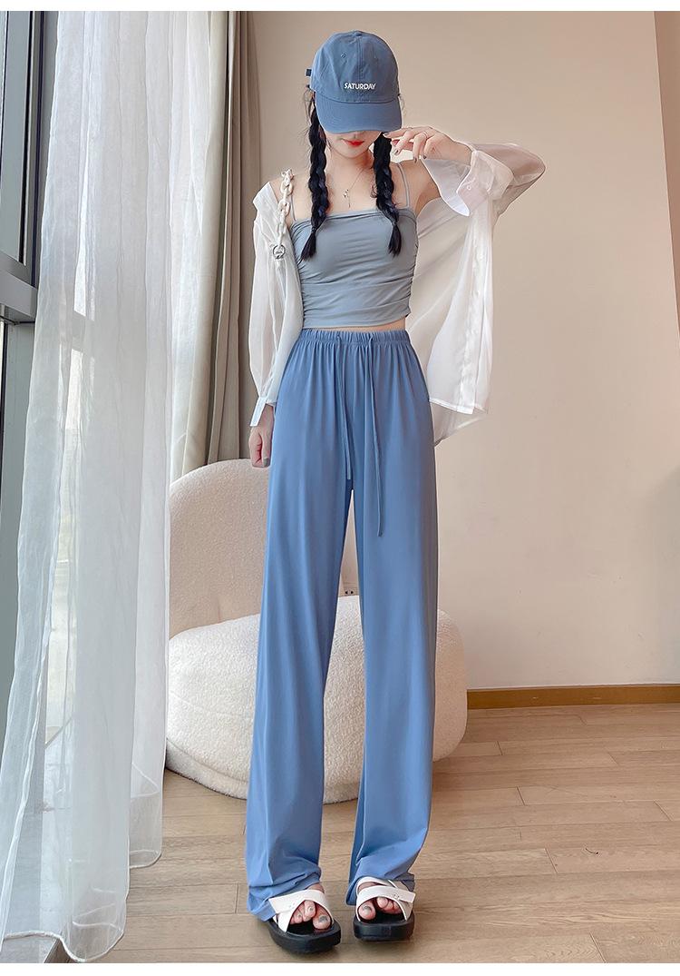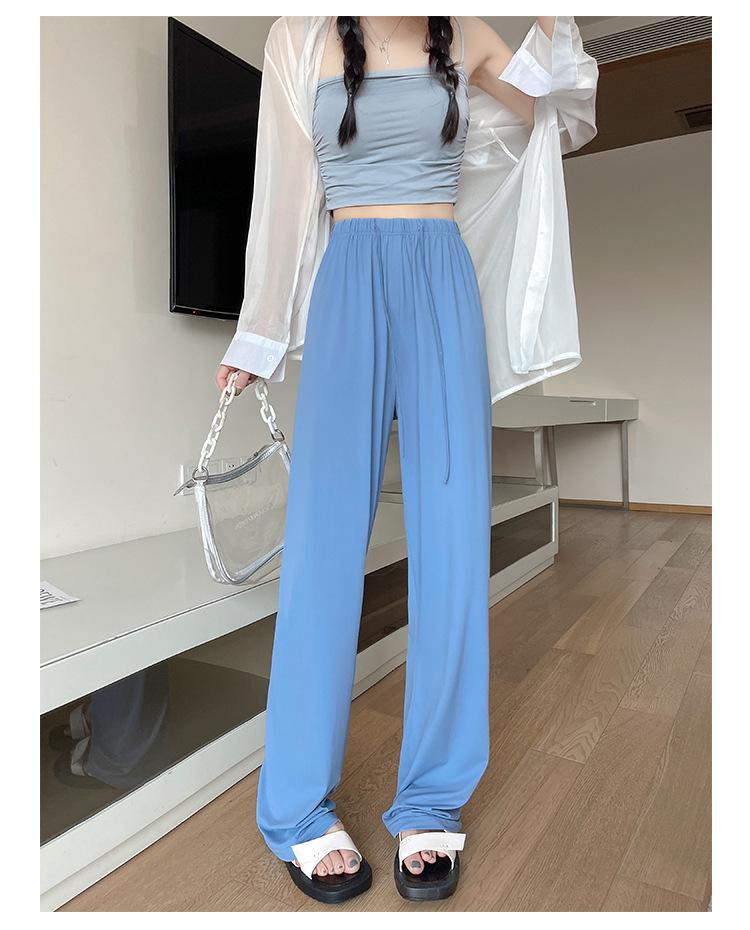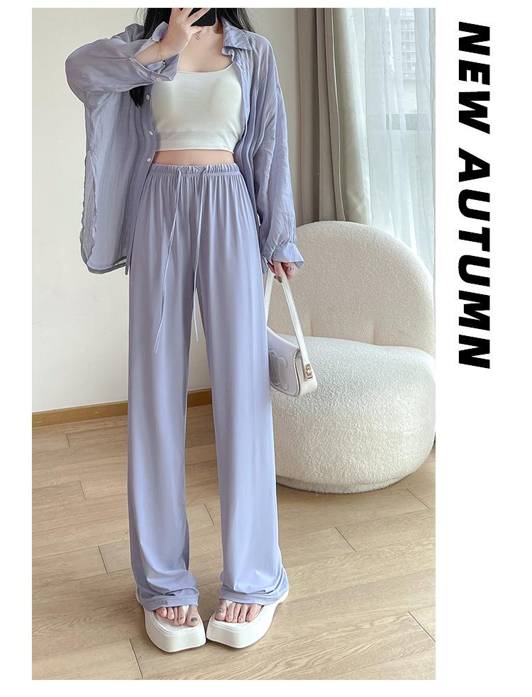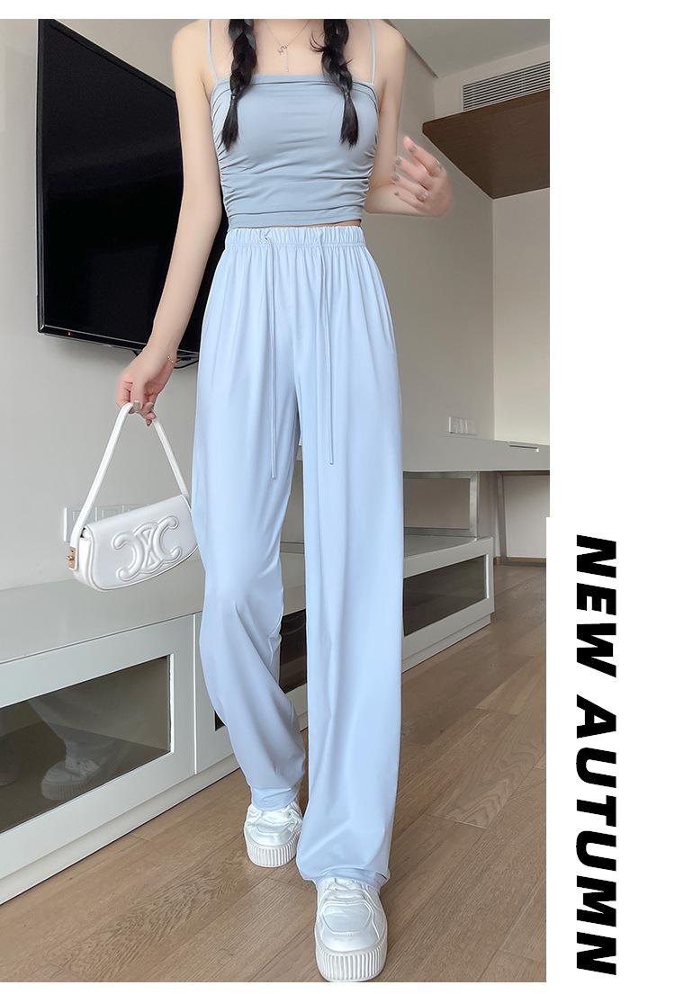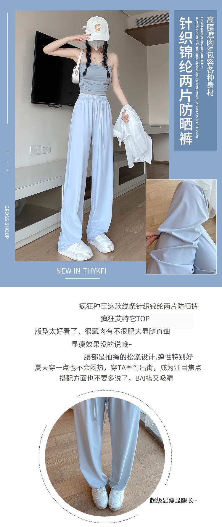 Pantalones de nailon con protección solar Pantalones de mujer Pantalones de verano para mujer 2025 Nuevo estilo Drapeados Rectos Casuales Pantalones de pierna ancha de seda helada para mujer