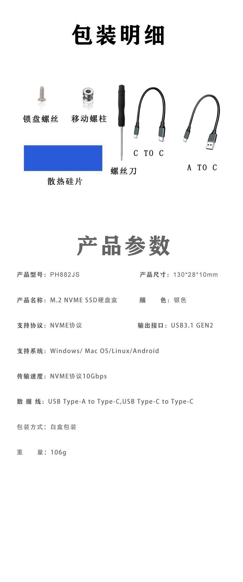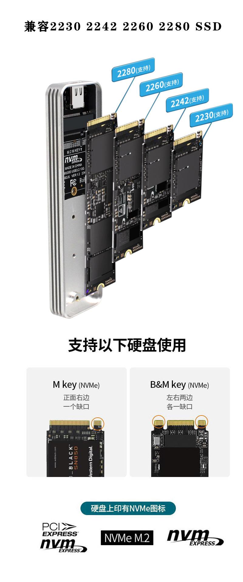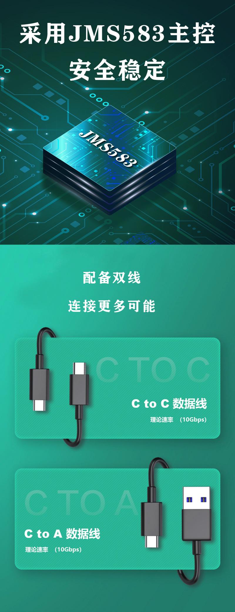 Caja de disco duro móvil de estado sólido M.2 NVMe USB3.2 Gen2 de 10 Gbps de alta velocidad JMS583 master