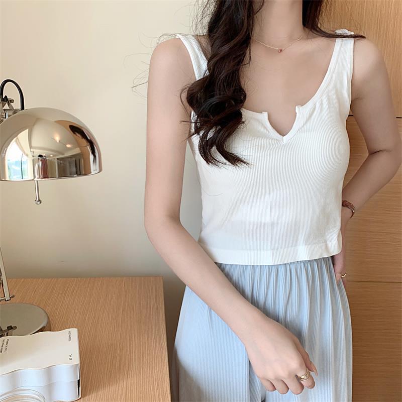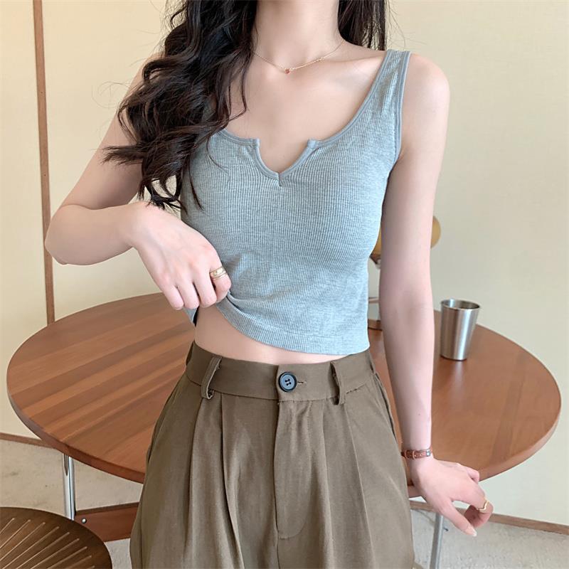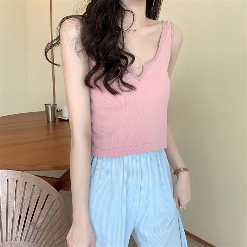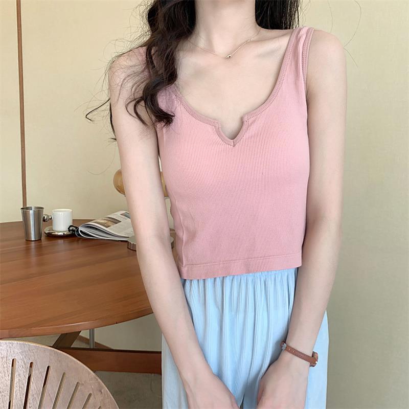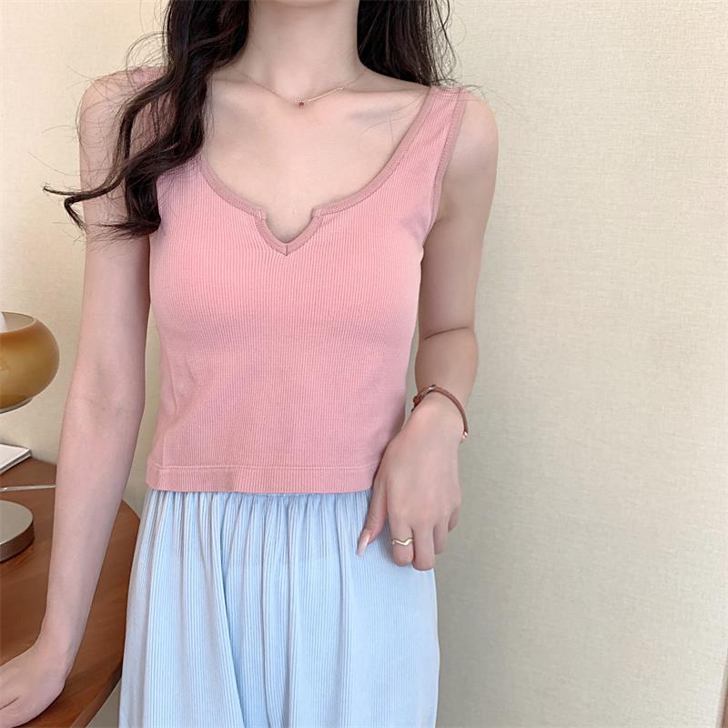 Camisola de Tirantes Anchos con Cuello en V de Color Sólido Chaleco Pequeño Ropa Exterior para Fondo de Verano para Mujer Ajustado Ropa Interior Ropa Exterior Top de Espalda Hermosa