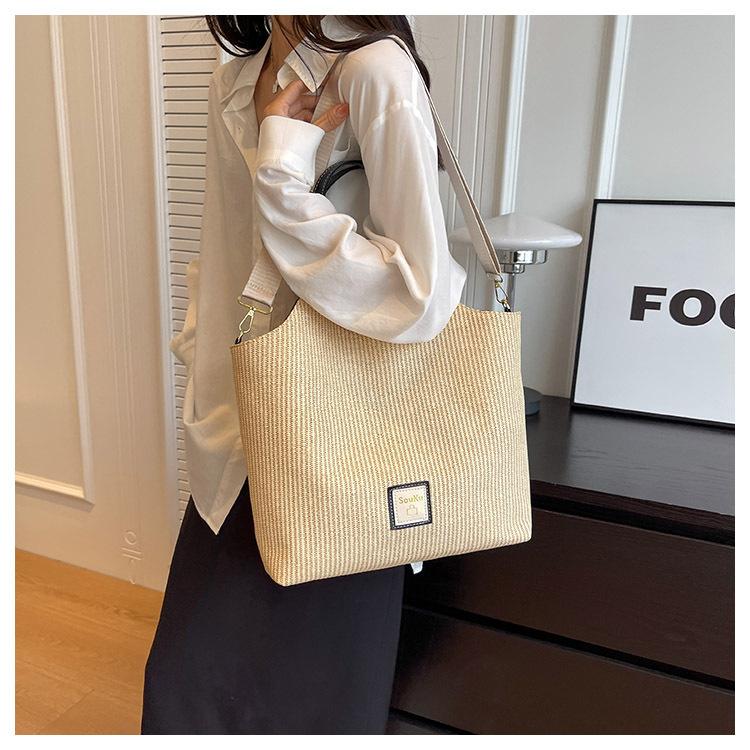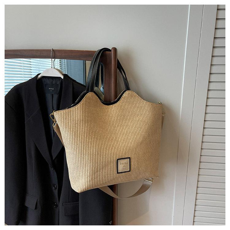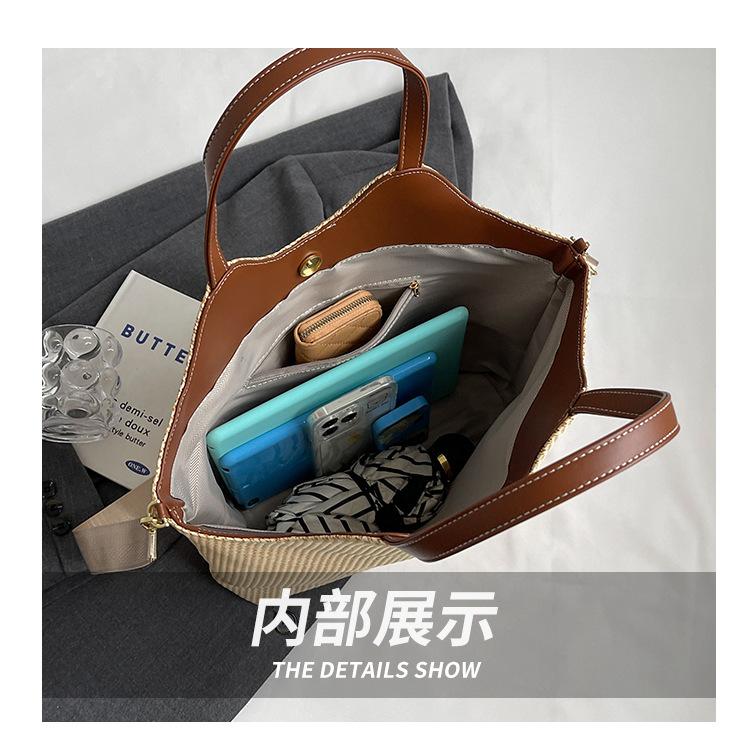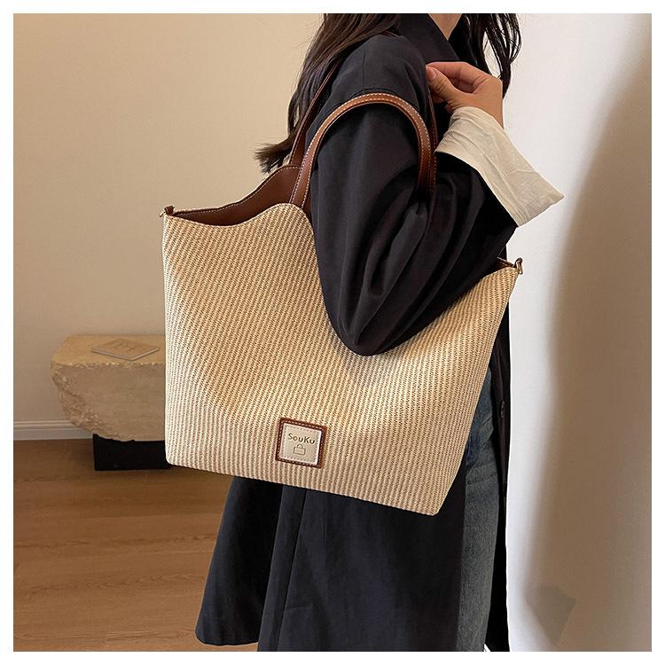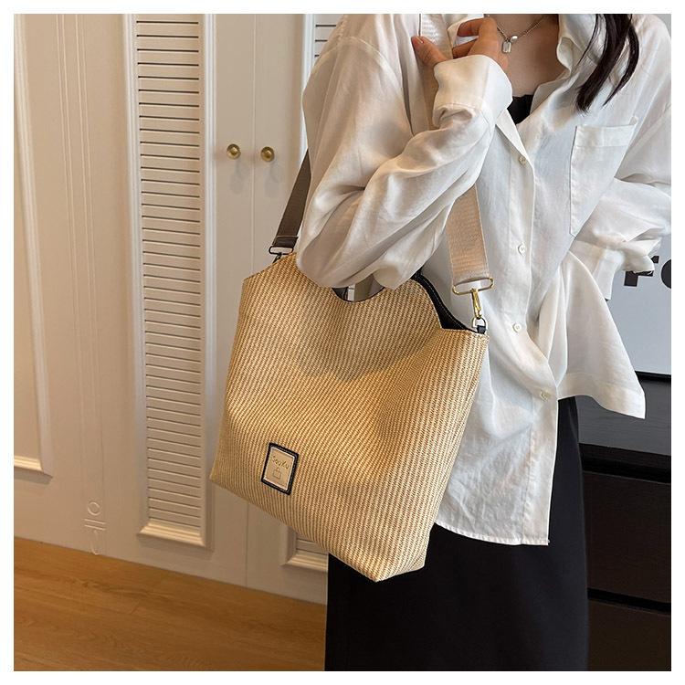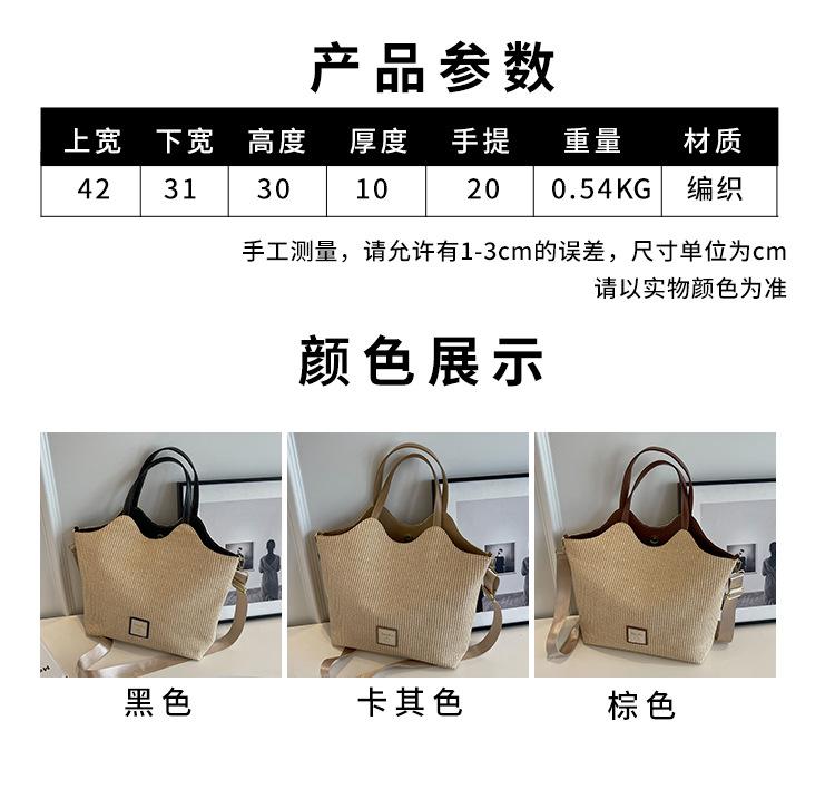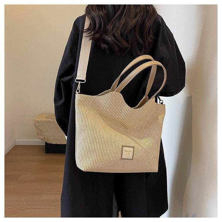 Bolso de paja tejido para mujer de gran capacidad 2023 nuevo otoño e invierno versátil bandolera de hombro portátil para ir al trabajo