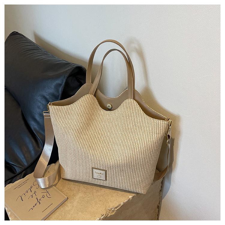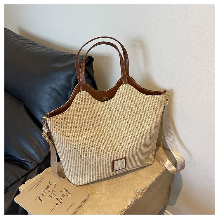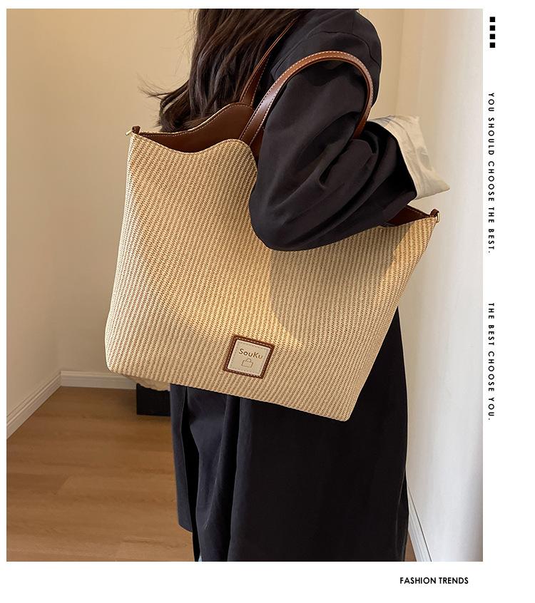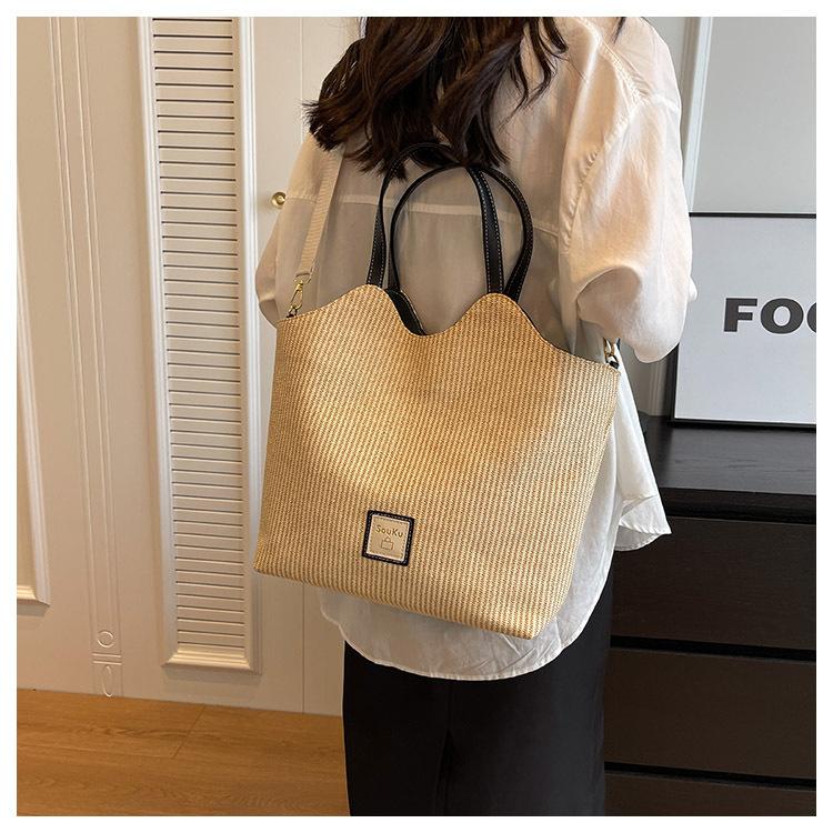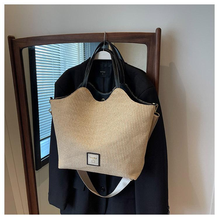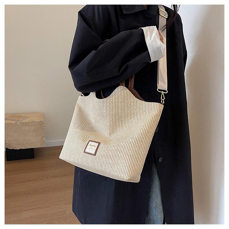 Bolso de paja tejido para mujer de gran capacidad 2023 nuevo otoño e invierno versátil bandolera de hombro portátil para ir al trabajo