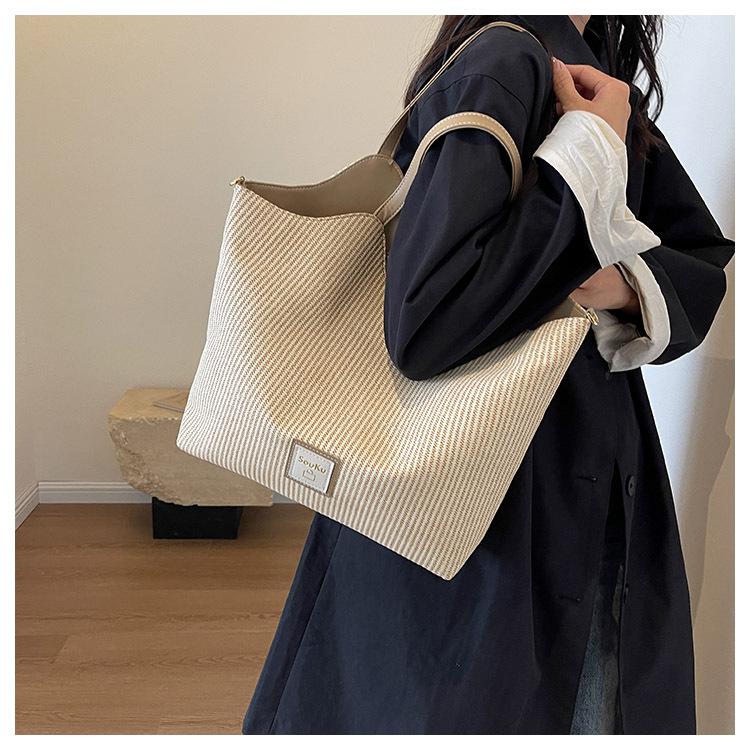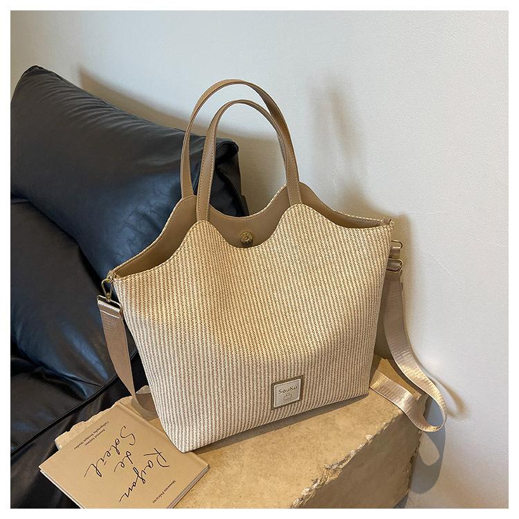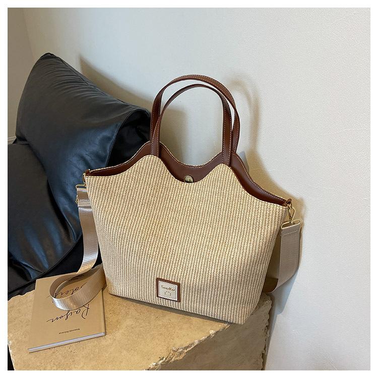 Bolso de lona para mujer, gran capacidad, 2024, nueva textura, color contrastante, bolso bandolera de verano, bolso de mano popular para ir al trabajo