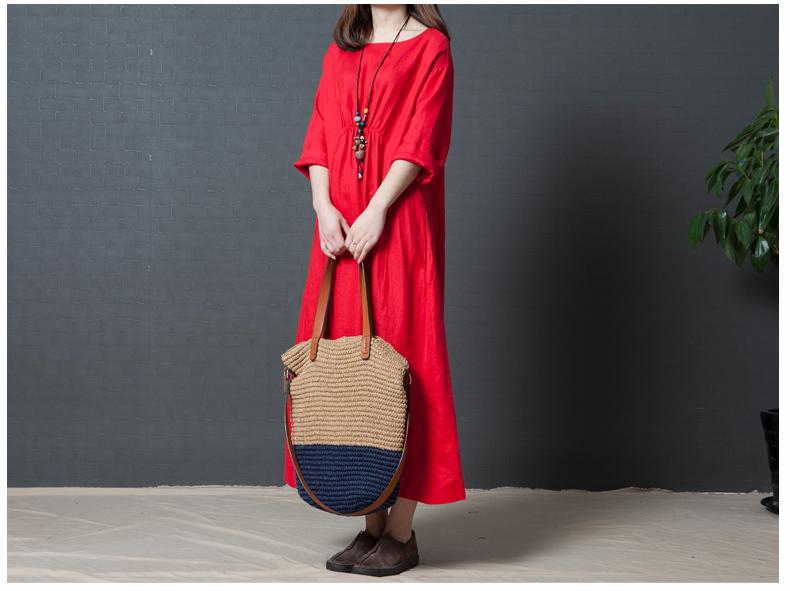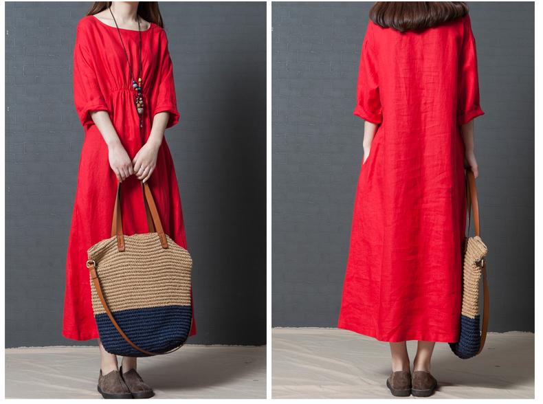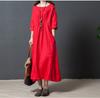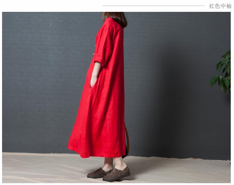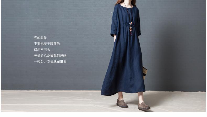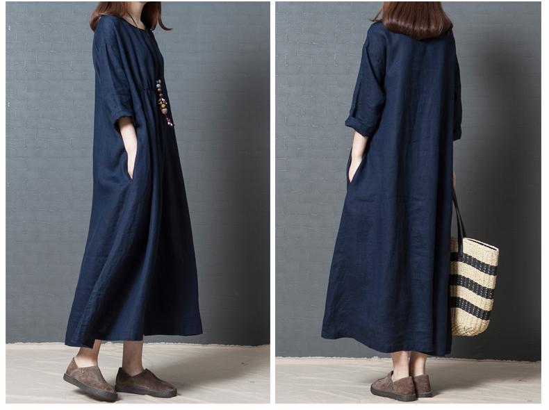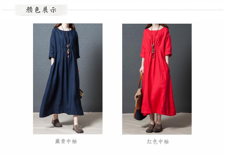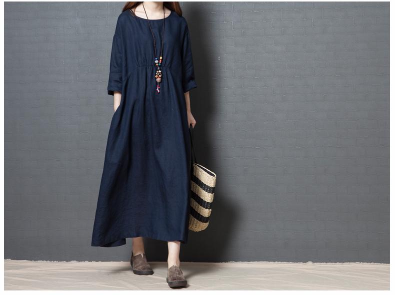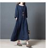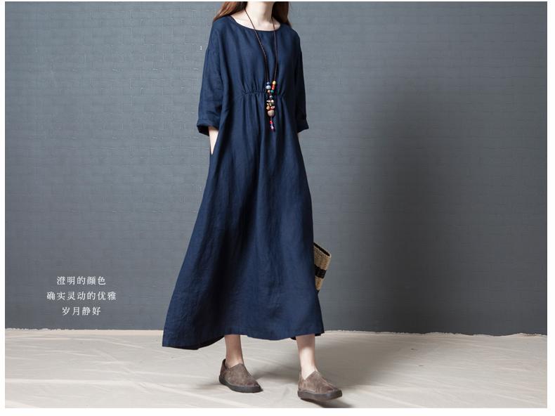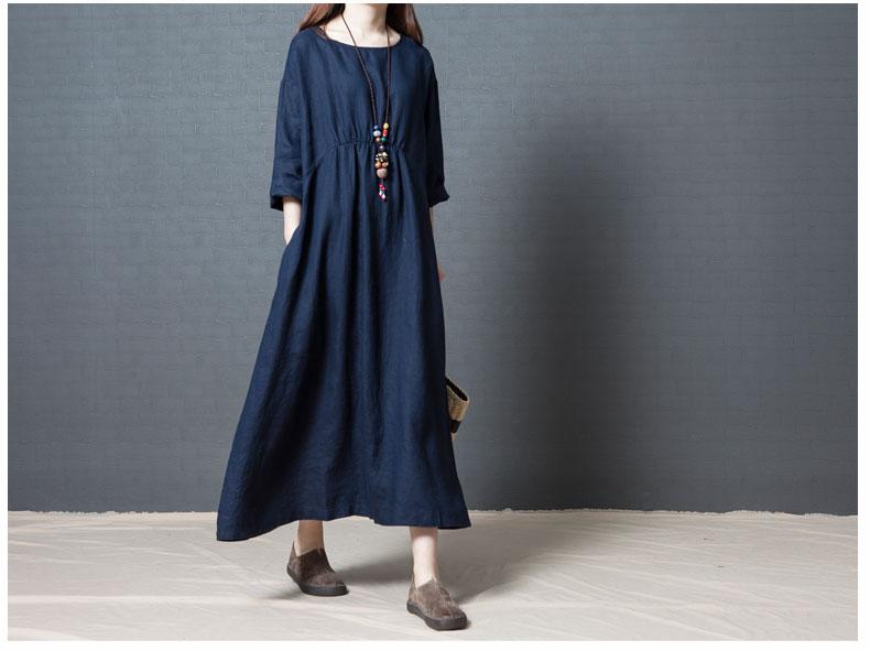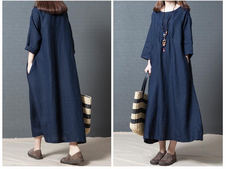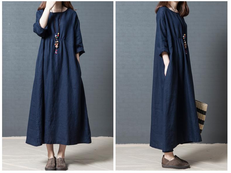 Compra Otoño Nuevo 2023 Versión coreana de vestido largo de lino de color sólido de moda para mujer de talla grande suelto al por mayor en Joom.pro