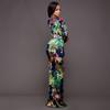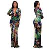 Vestido sexy con abertura alta estampada de Europa y Estados Unidos 2022 nuevo transfronterizo de principios de otoño moda femenina vestido de manga larga con escote en V profundo