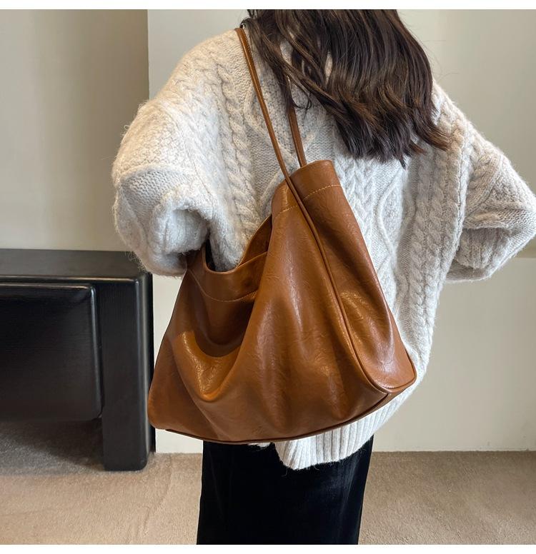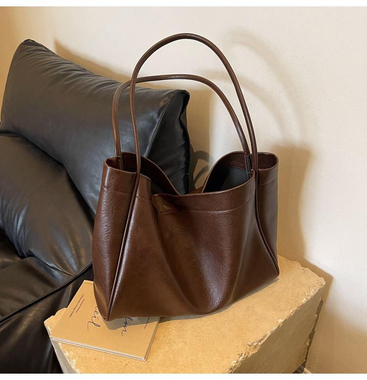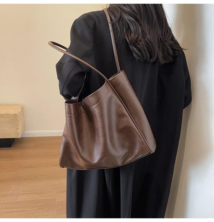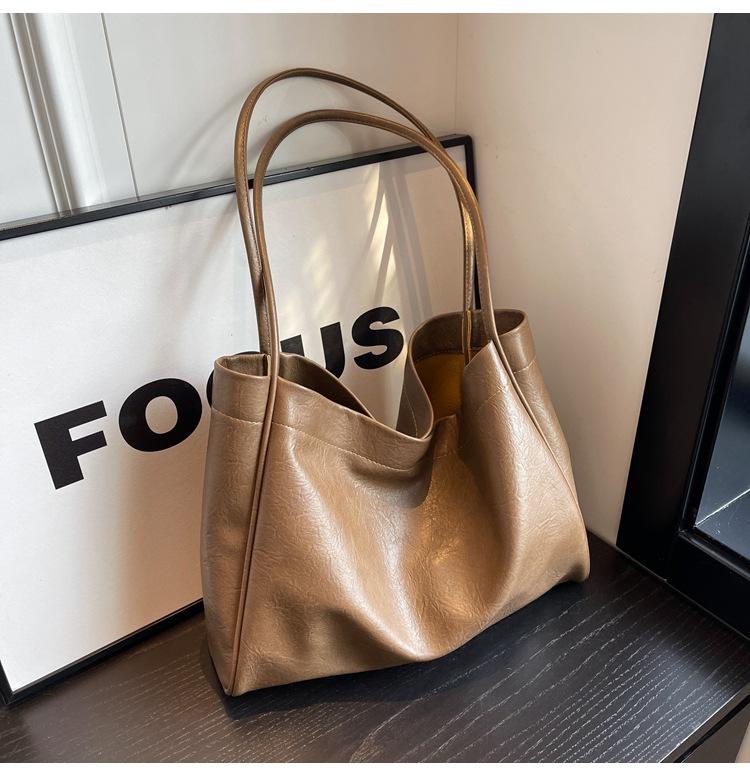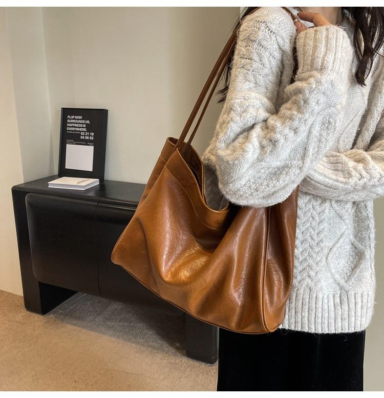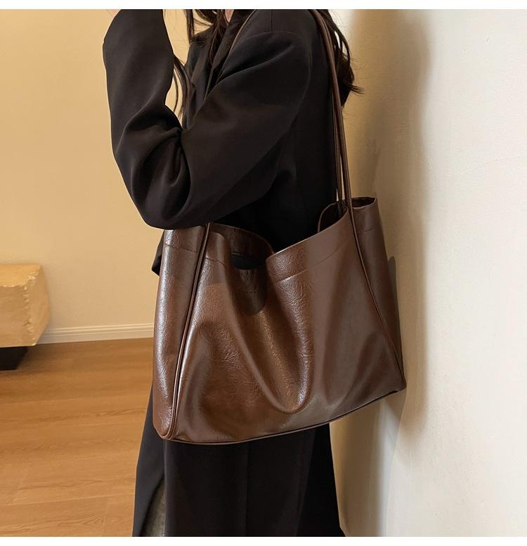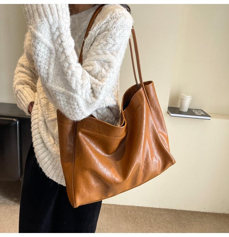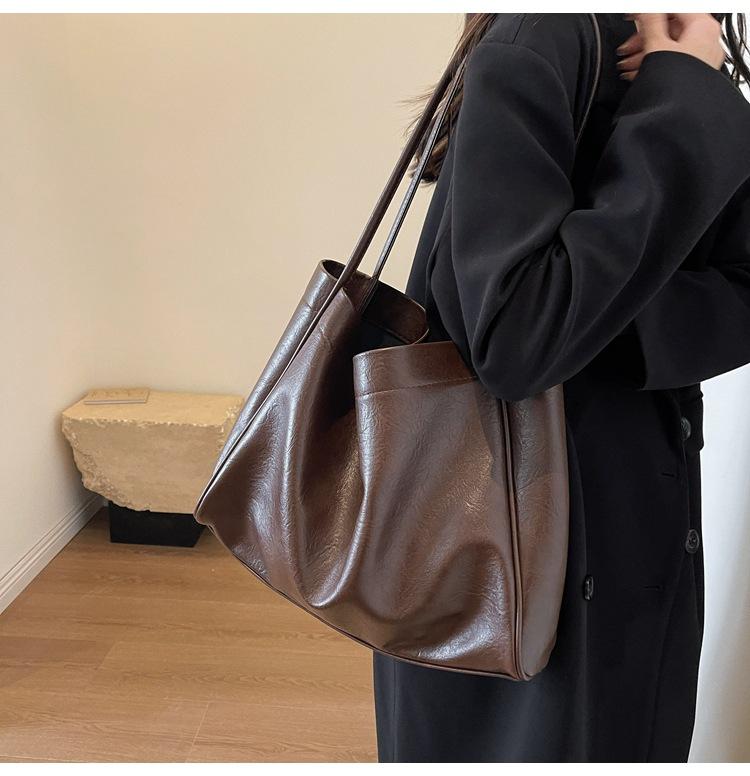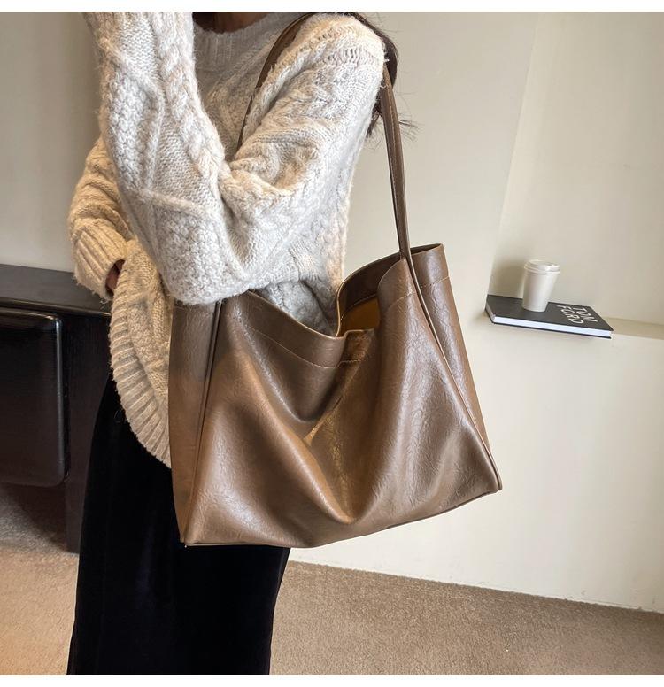 Bolso de Gran Capacidad para Mujer Otoño e Invierno Versátil 2025 Nuevo Bolso de Hombro Simple Casual Retro Clase Ropa de Trabajo Bolso Tote