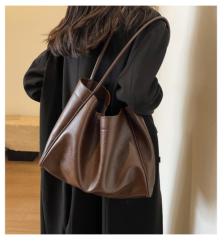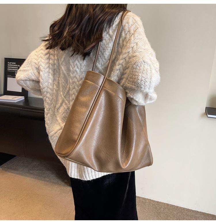 Bolso grande de estilo coreano popular de este año para mujer, nuevo bolso de hombro tipo cubo de alta gama retro combinable para otoño e invierno 2024