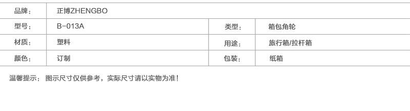 Guangzhou Zhengbo Luggage Products Co., Ltd. se especializa en la producción de una serie de accesorios para equipaje, como cerraduras de combinación, candados, cerraduras fijas, cerraduras aduaneras TSA, carritos, ruedas para maletas, ruedas para maletas y asas. Nuestros productos son populares en el mercado y gozan de gran prestigio. La empresa ha establecido relaciones de cooperación duraderas y estables con importantes fabricantes y agentes de equipaje. Ofrece una gama completa de productos a precios razonables. Con una sólida trayectoria comercial, valoramos la credibilidad, cumplimos los contratos y garantizamos la calidad de nuestros productos. Nos hemos ganado la confianza de nuestros clientes gracias a nuestra amplia gama de productos y al principio de bajos beneficios y rápida rotación.