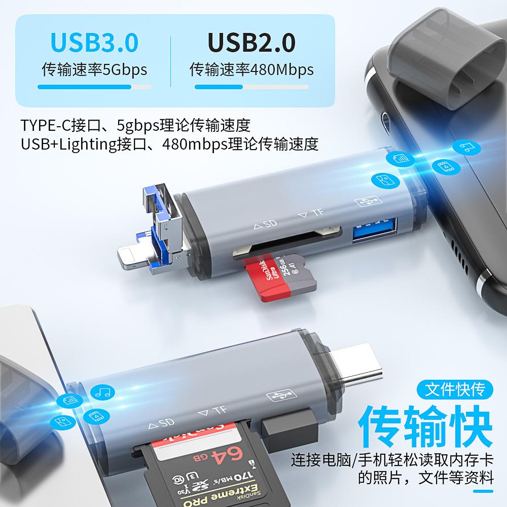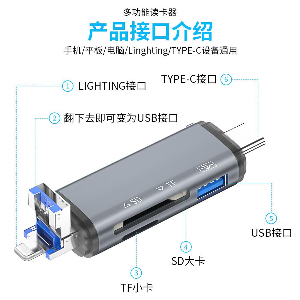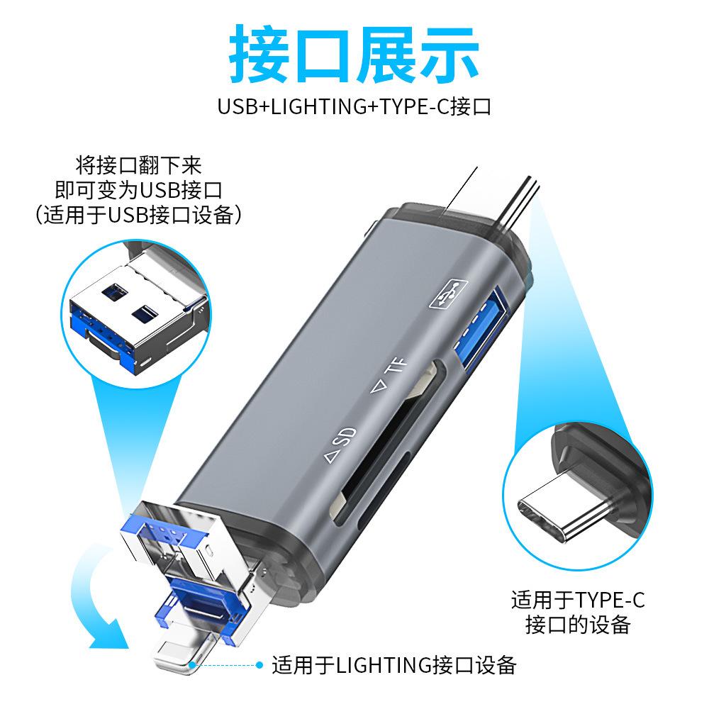 Lector de tarjetas OTG multifuncional seis en uno SD/TF Computadora Teléfono móvil Universal con puerto USB 3.0 Lector de tarjetas tipo C