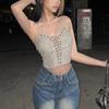 Chaleco de verano con tirantes y cuello en el ombligo, estilo europeo y americano transfronterizo 2023, estación independiente, nuevo, de color sólido, sexy, a la moda