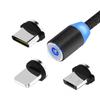 Cable de datos con succión magnética para Apple Android tipo C, carga rápida, cabezal redondo, nailon tejido universal, indicador de carga.