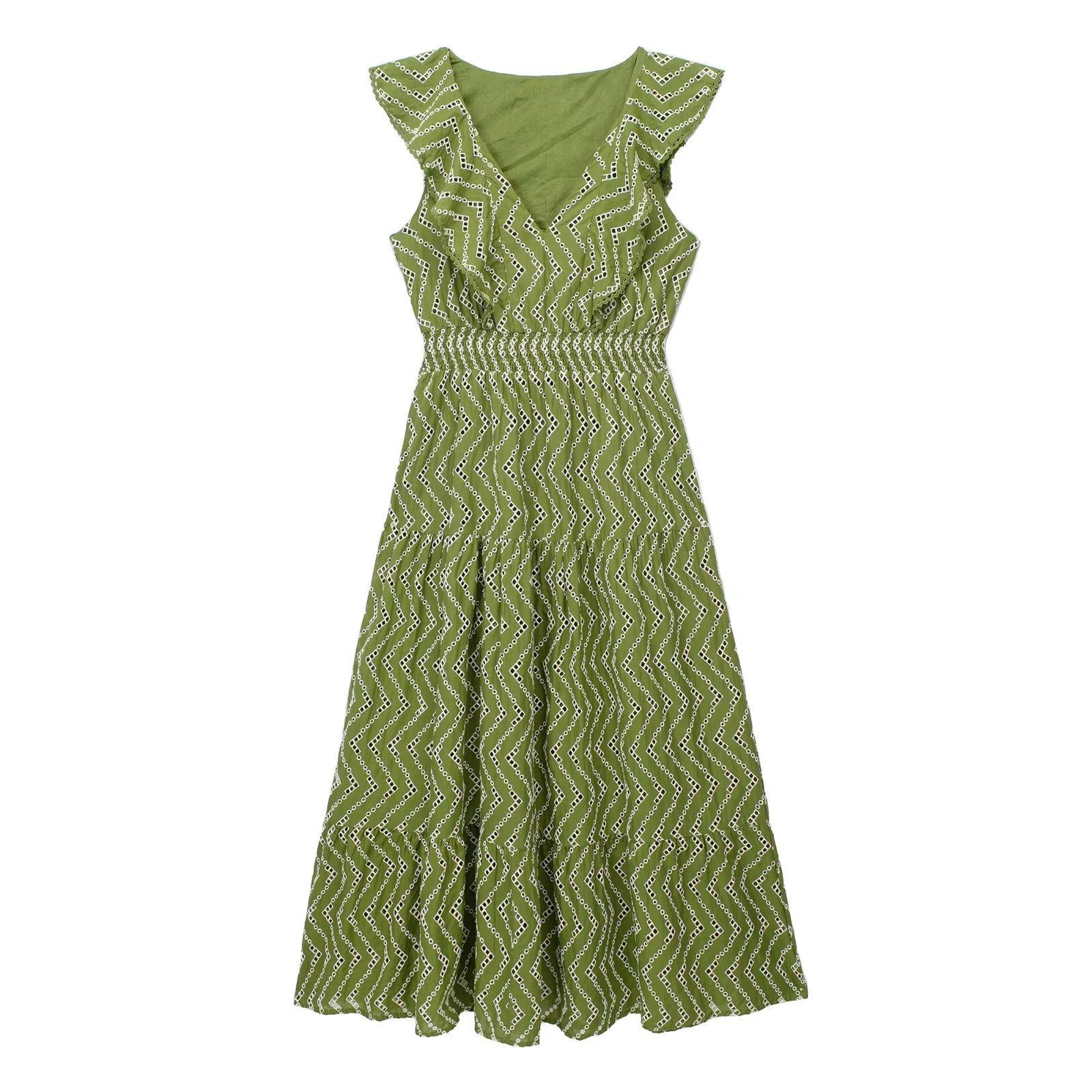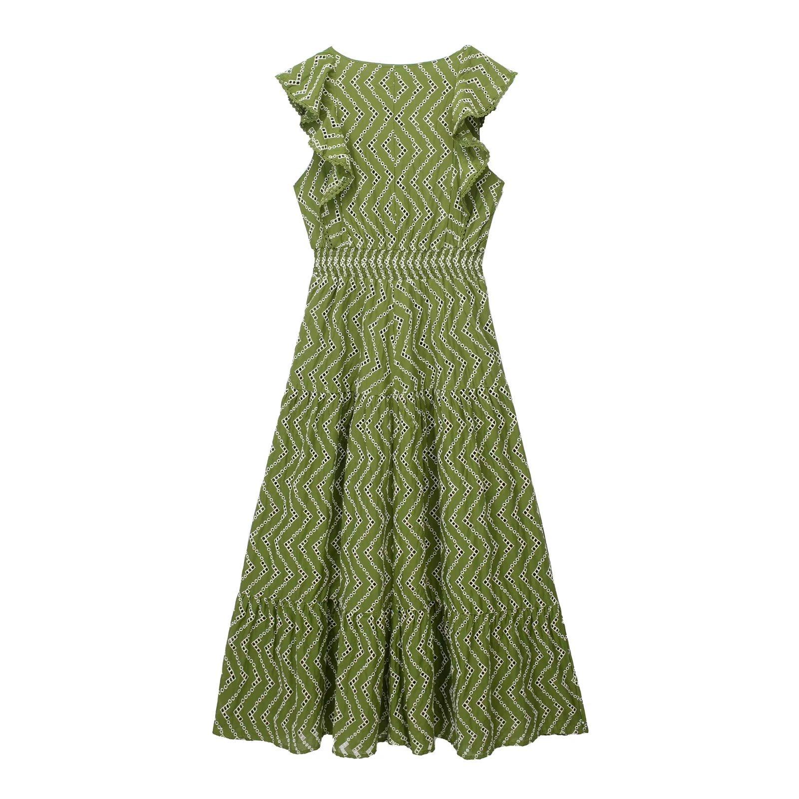 Vestido tipo chaleco con bordado decorativo laminado y costuras con volantes de gran venta de verano para mujeres europeas y americanas de comercio exterior transfronterizo al por mayor
