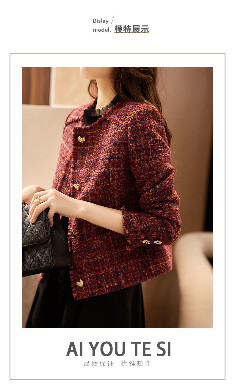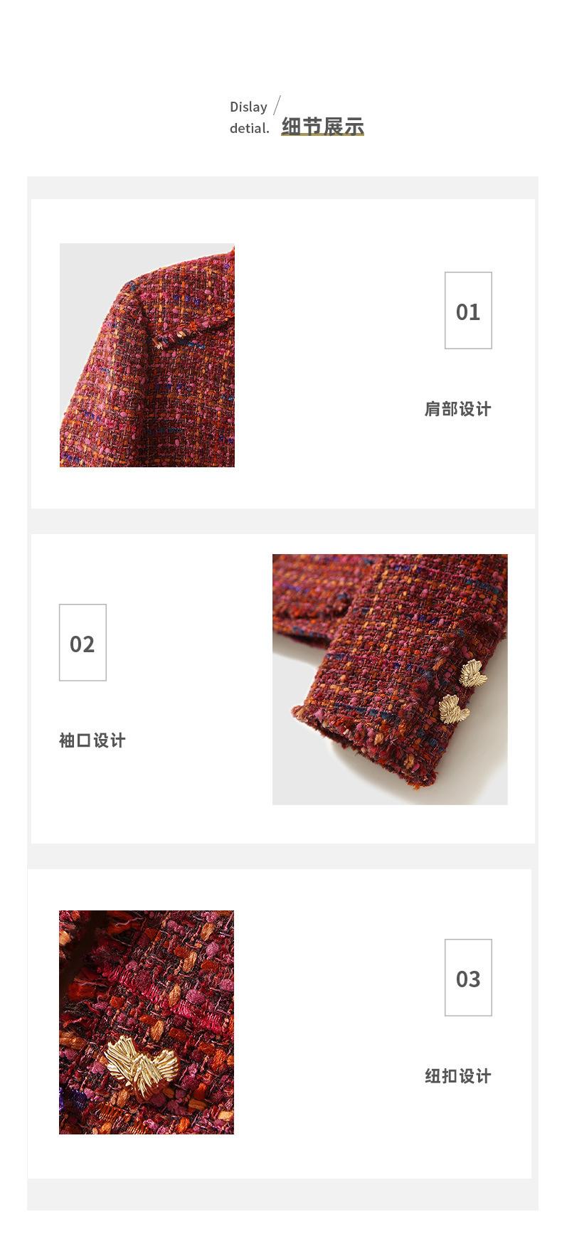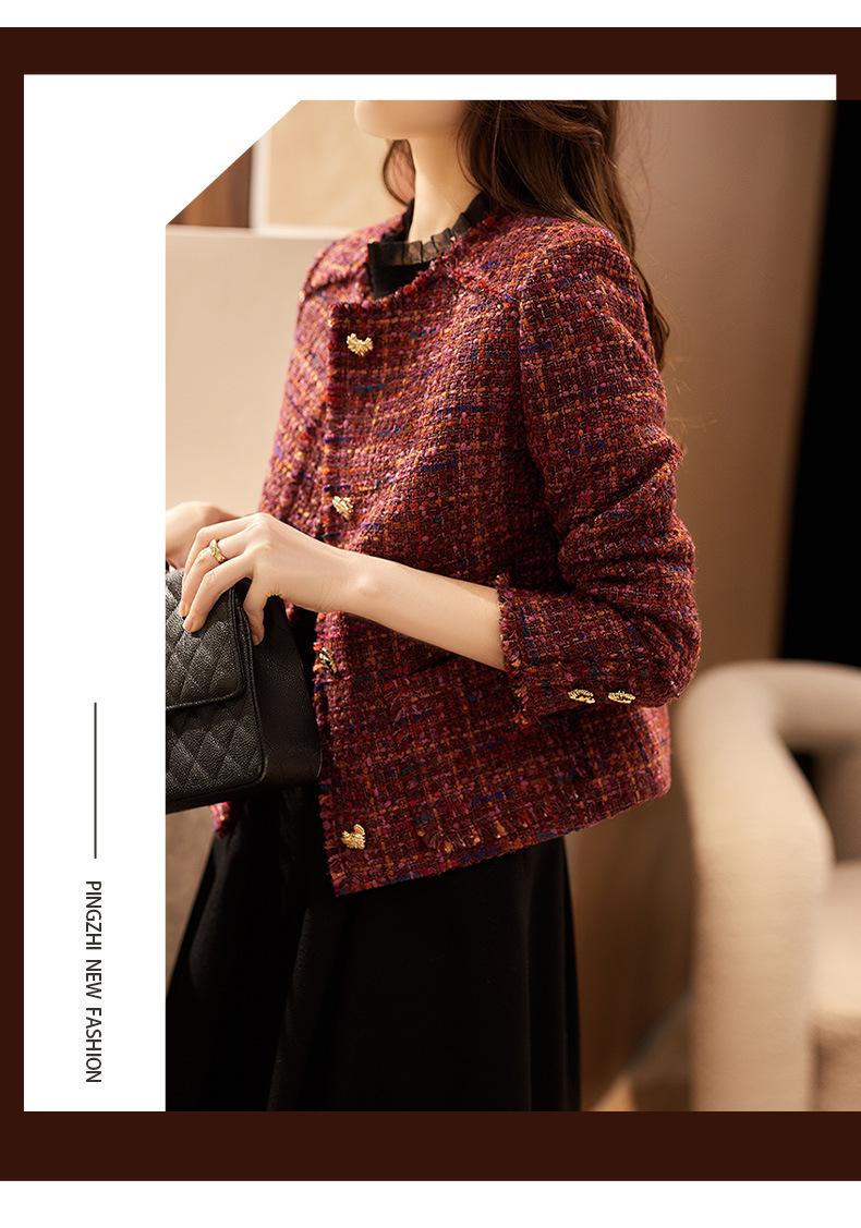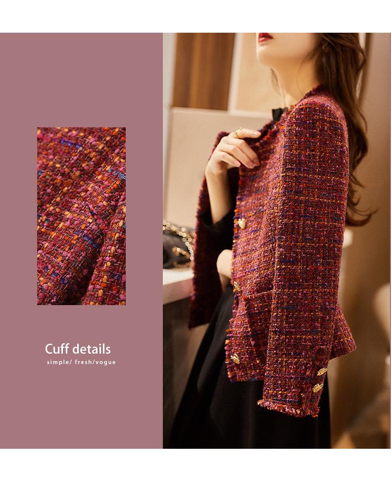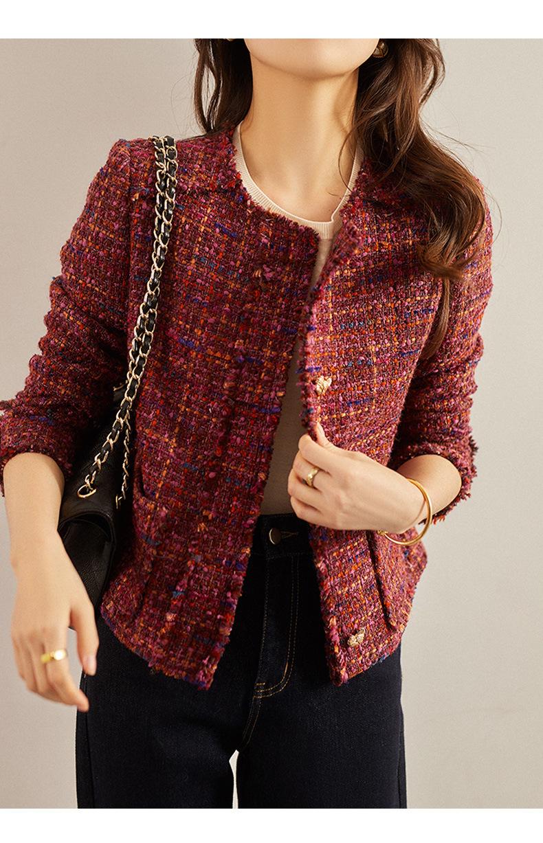 Chaqueta de Tweed de Lana con un Tacto de Alta Gama, Estilo Corto de Tweed Rojo, Outfit de Invierno para Mujer, Top de Otoño 2025
