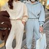 Terciopelo Otoño e Invierno K-Style 2025 Primavera y Otoño Elegante Sudadera y Pantalón Conjunto de Dos Piezas Sencillo con Capucha Casual Traje Deportivo para Mujer