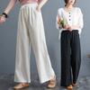 Calças de Algodão e Linho Literárias 2025 Calças Largas Tamanho Grande Calças de Perna Larga Cintura Alta Calças para Arrastar no Chão Calças de Perna Reta Calças de Linho Femininas
