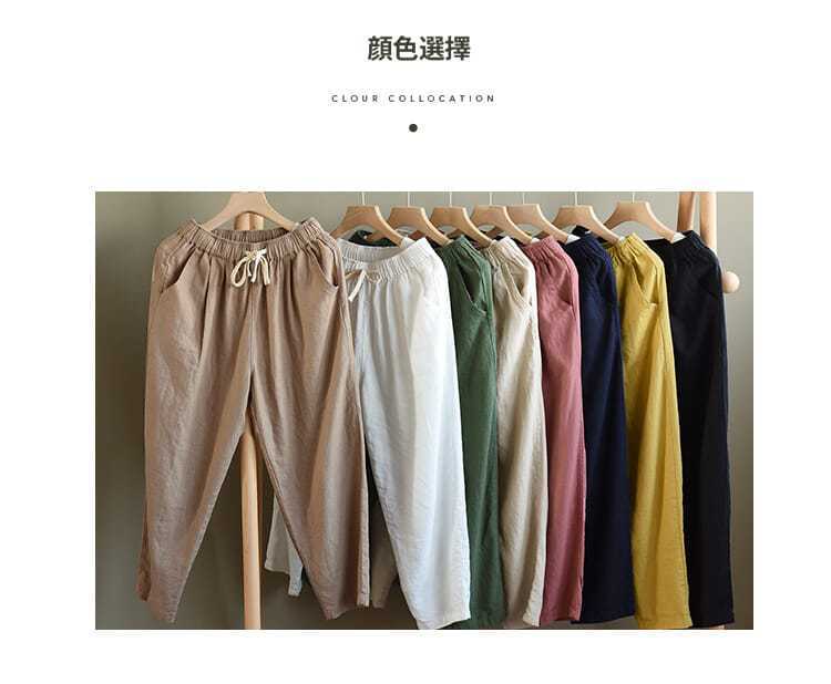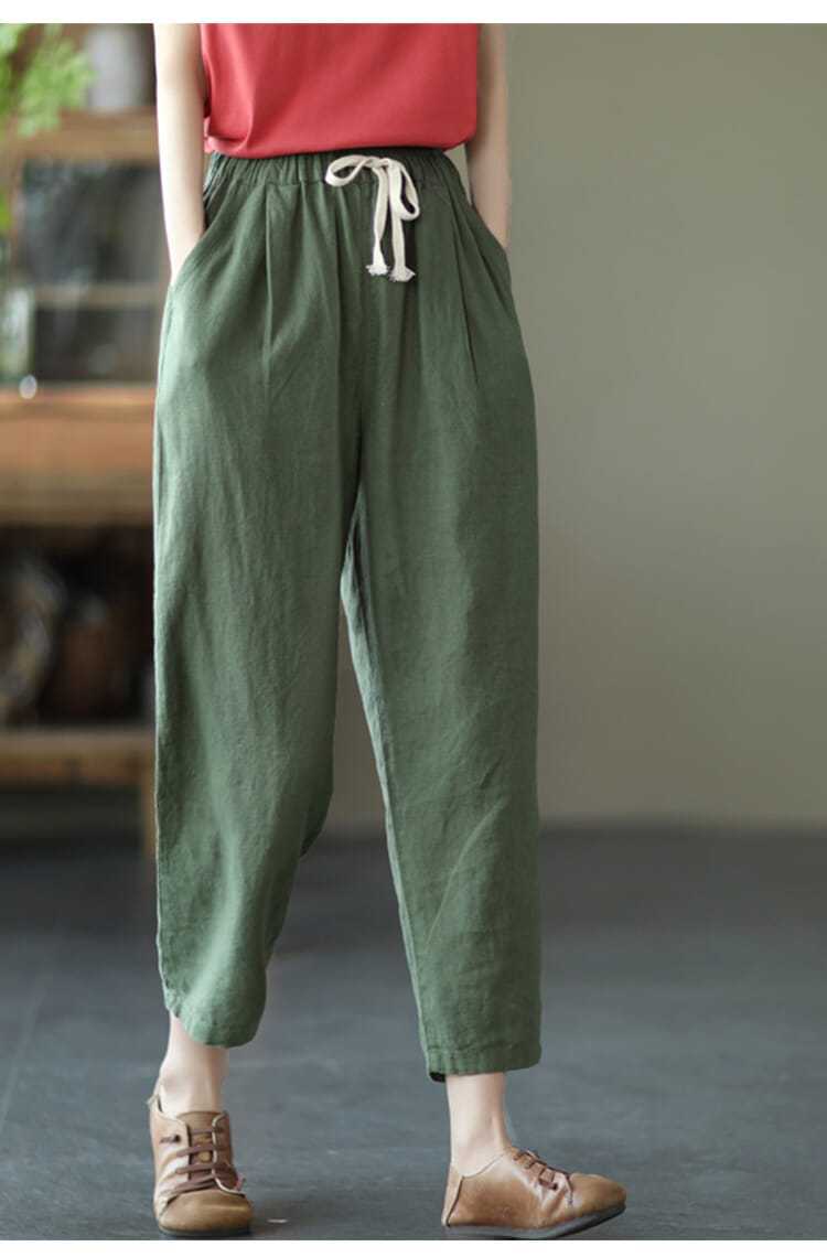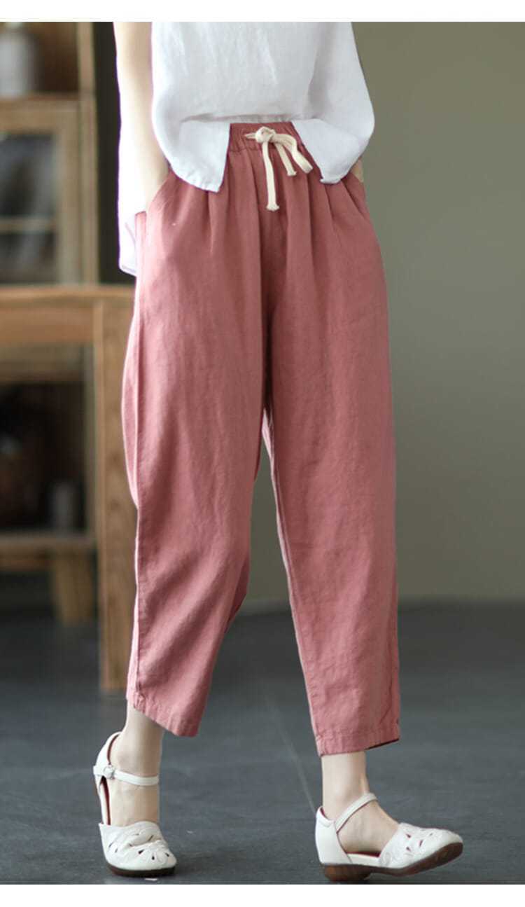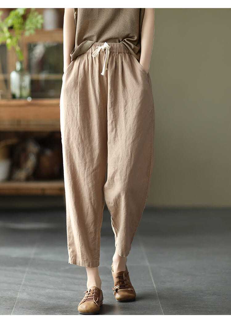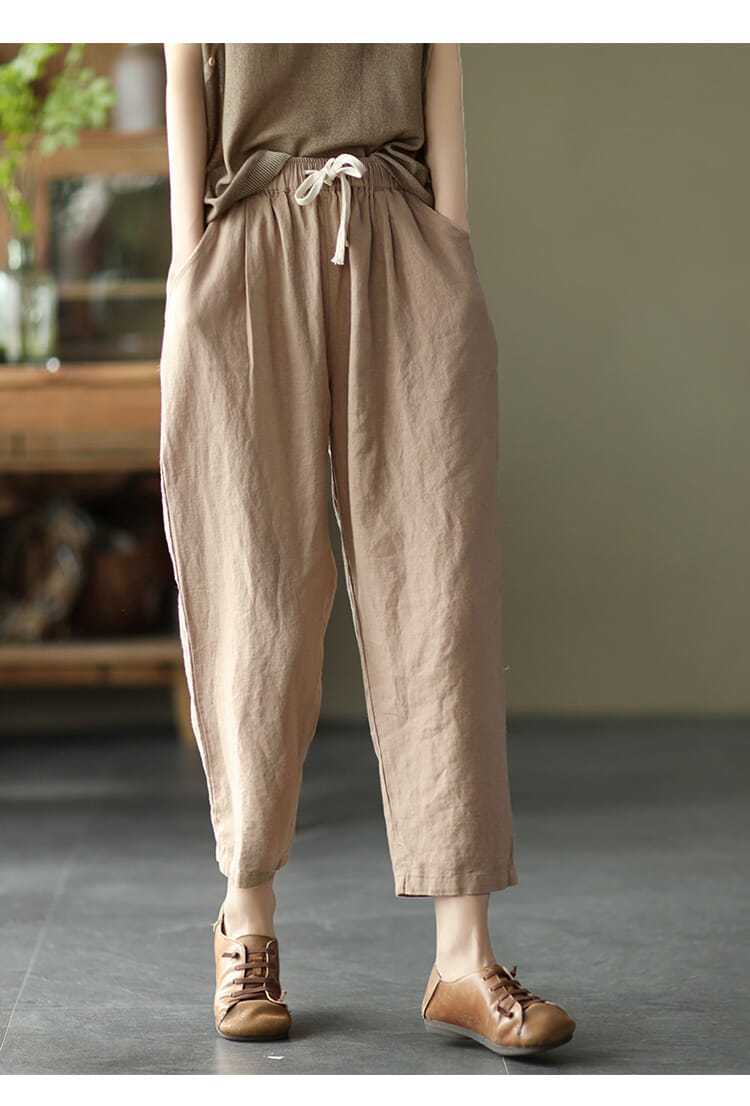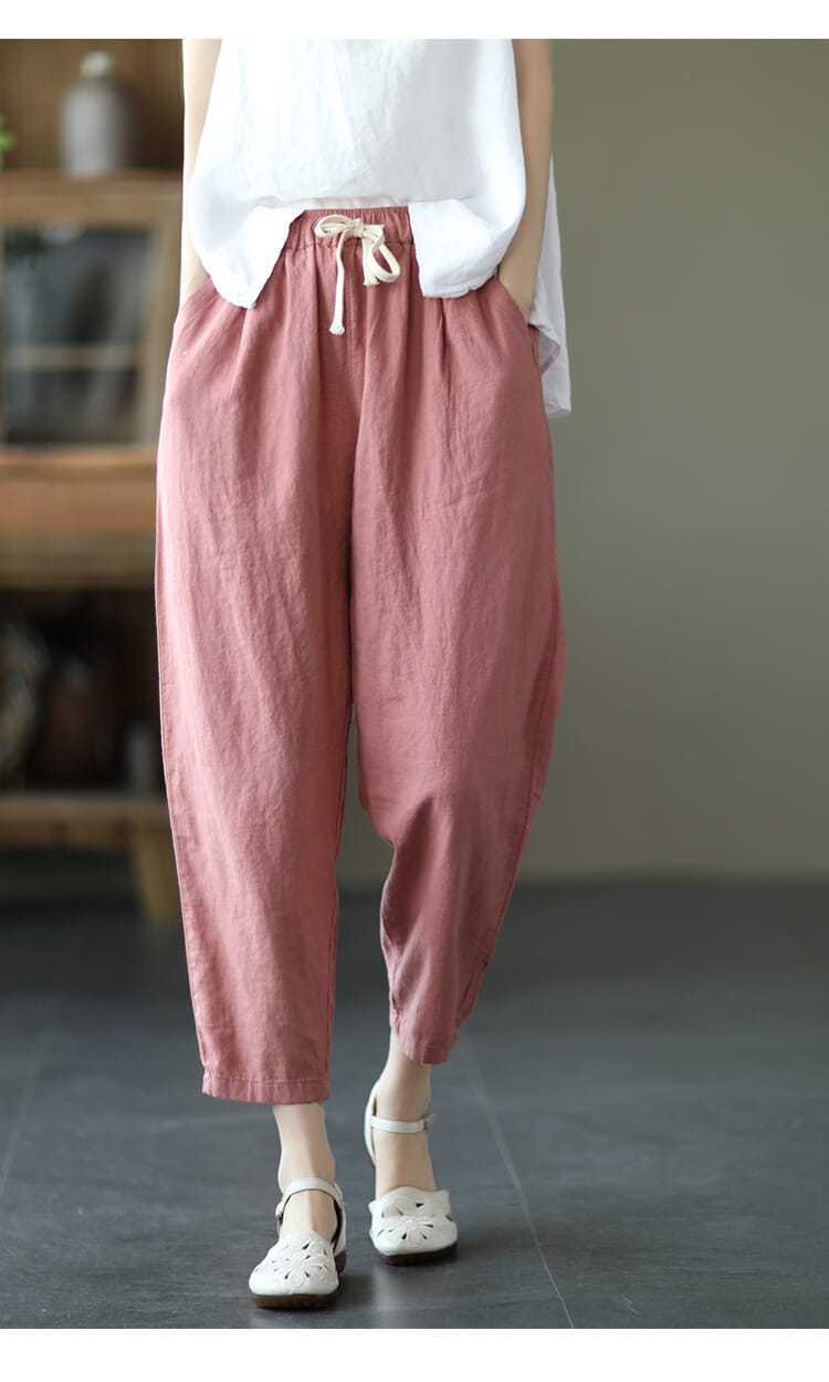 Pantalones de zanahoria retro de algodón y lino para mujer, pantalones harén de verano 2024, holgados, de color puro, versátiles, informales, de nueve puntos.